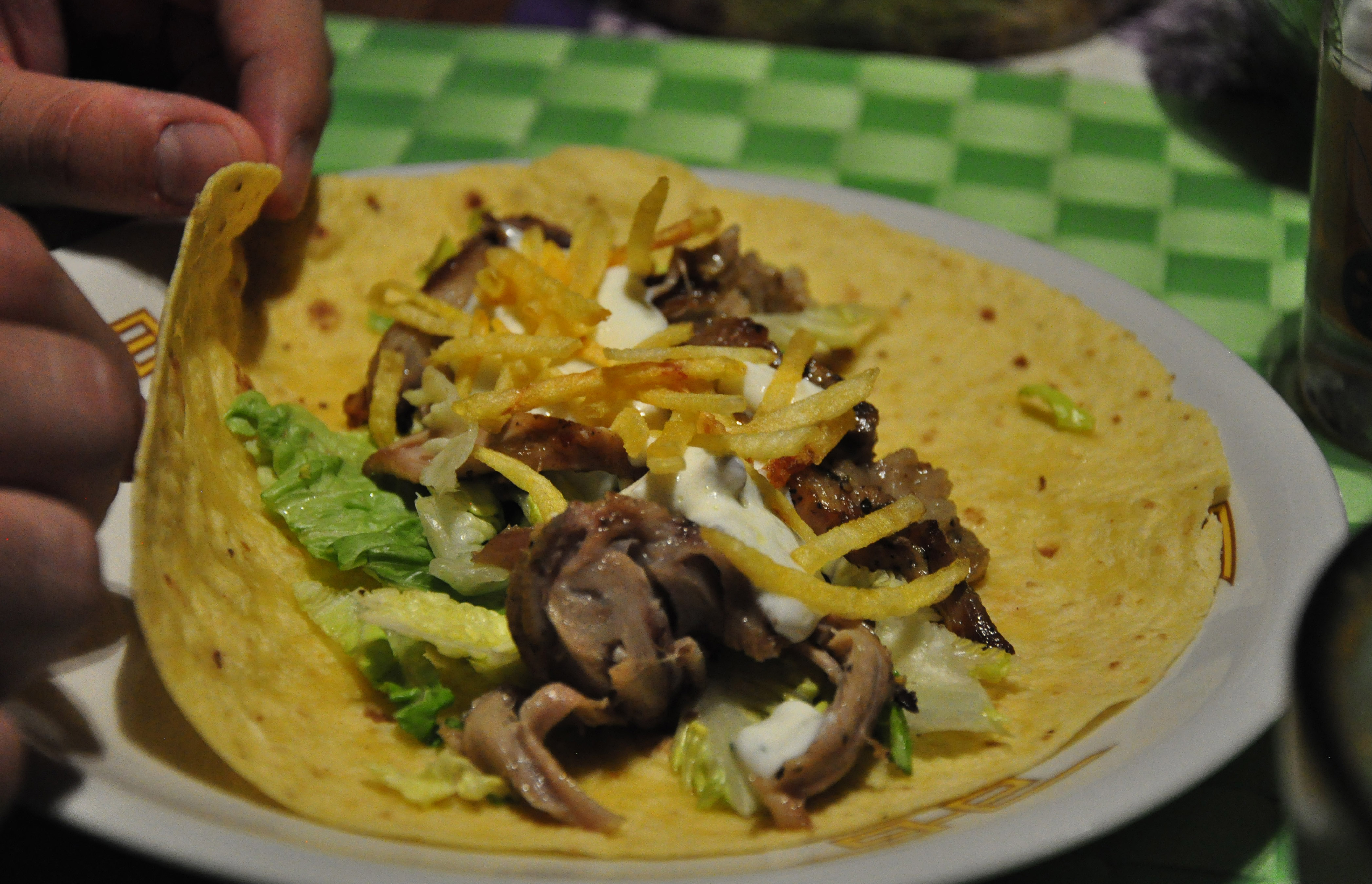 So out came the maize tortillas, which literally mean “little cakes” in Spanish, and the lettuce pops out of the fridge, and just like that a smooth tzatziki is whipped up with the mint from our garden …et voilá! A scrumptious, gourmet tortilla is made. The mint sauce was perfect with the lamb, the lettuce gave it a nice crunch and the mini fries….well, they were just out of greed 🙂
