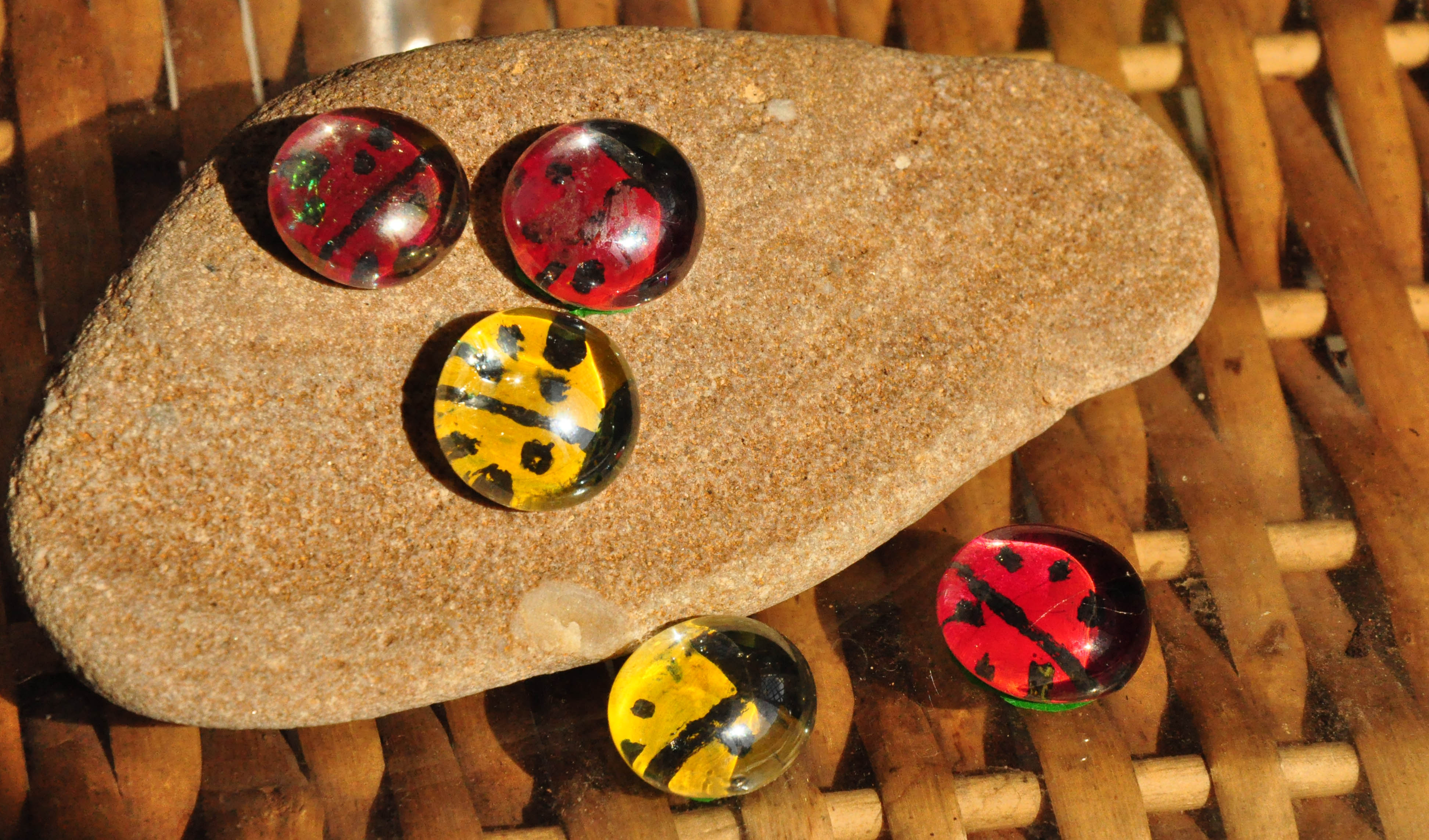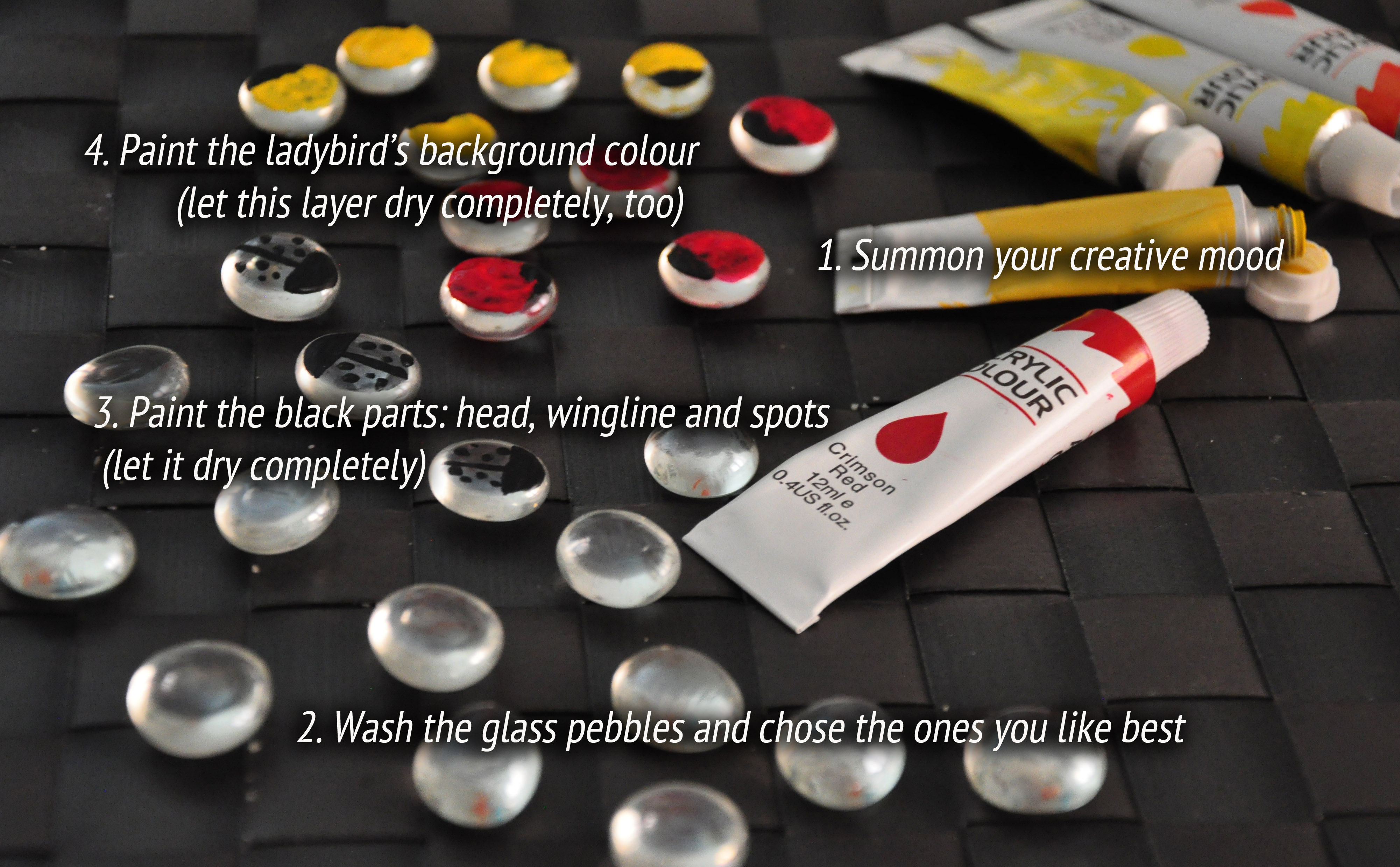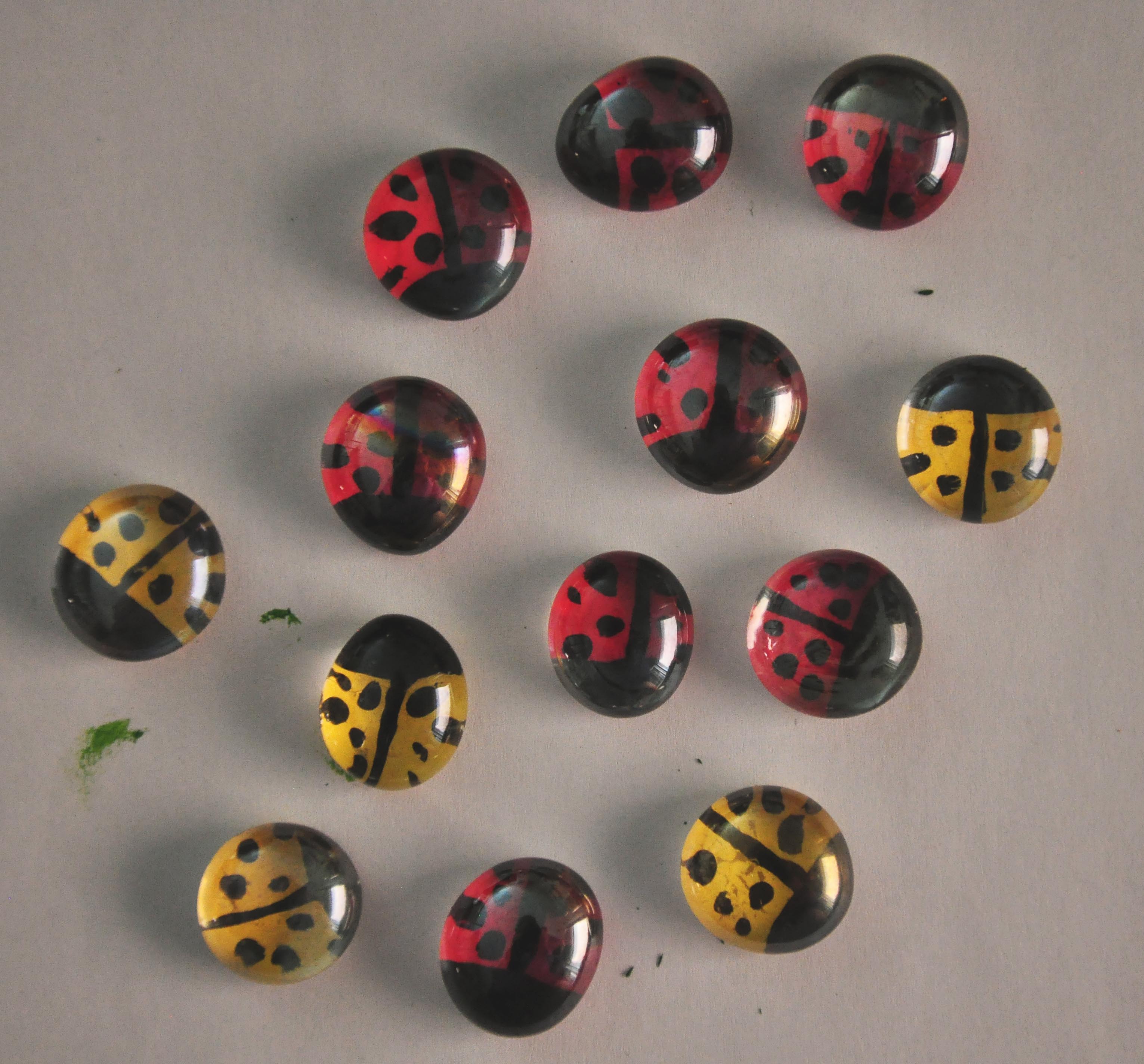 Lady bird charms made with little glass pebbles and a tiny bit of paint. I'm not sure an easier craft exists, and it's definitely a lovely gift!