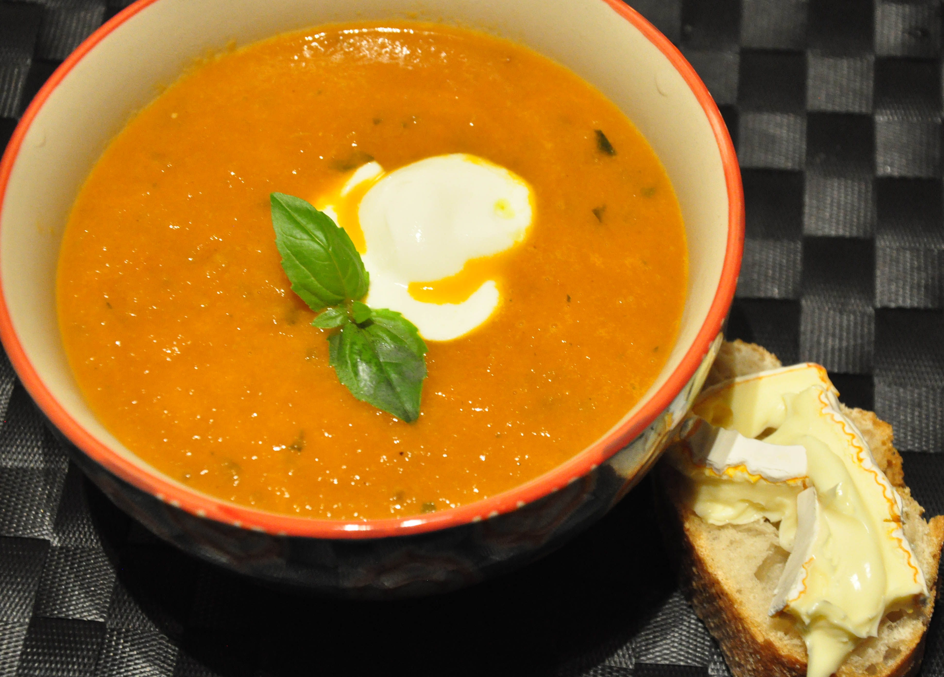 Just in case you’re wondering, the brandy did make a difference and did taste good.When I served the soup I added a dollop of sour cream, but it can very well be served without. A great compliment to the dish is a slice of bread with some brie. mmmmh – perfect combination!