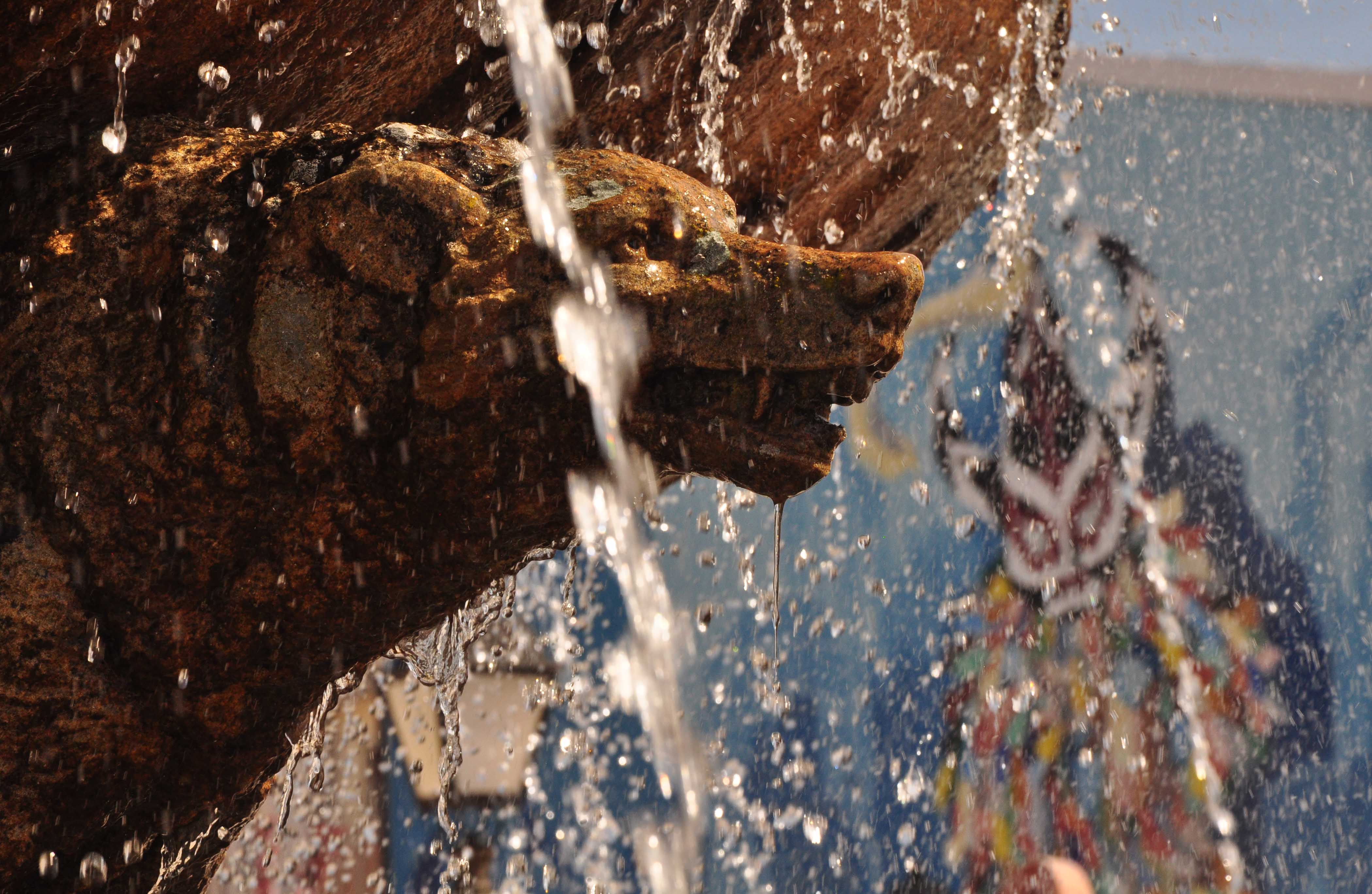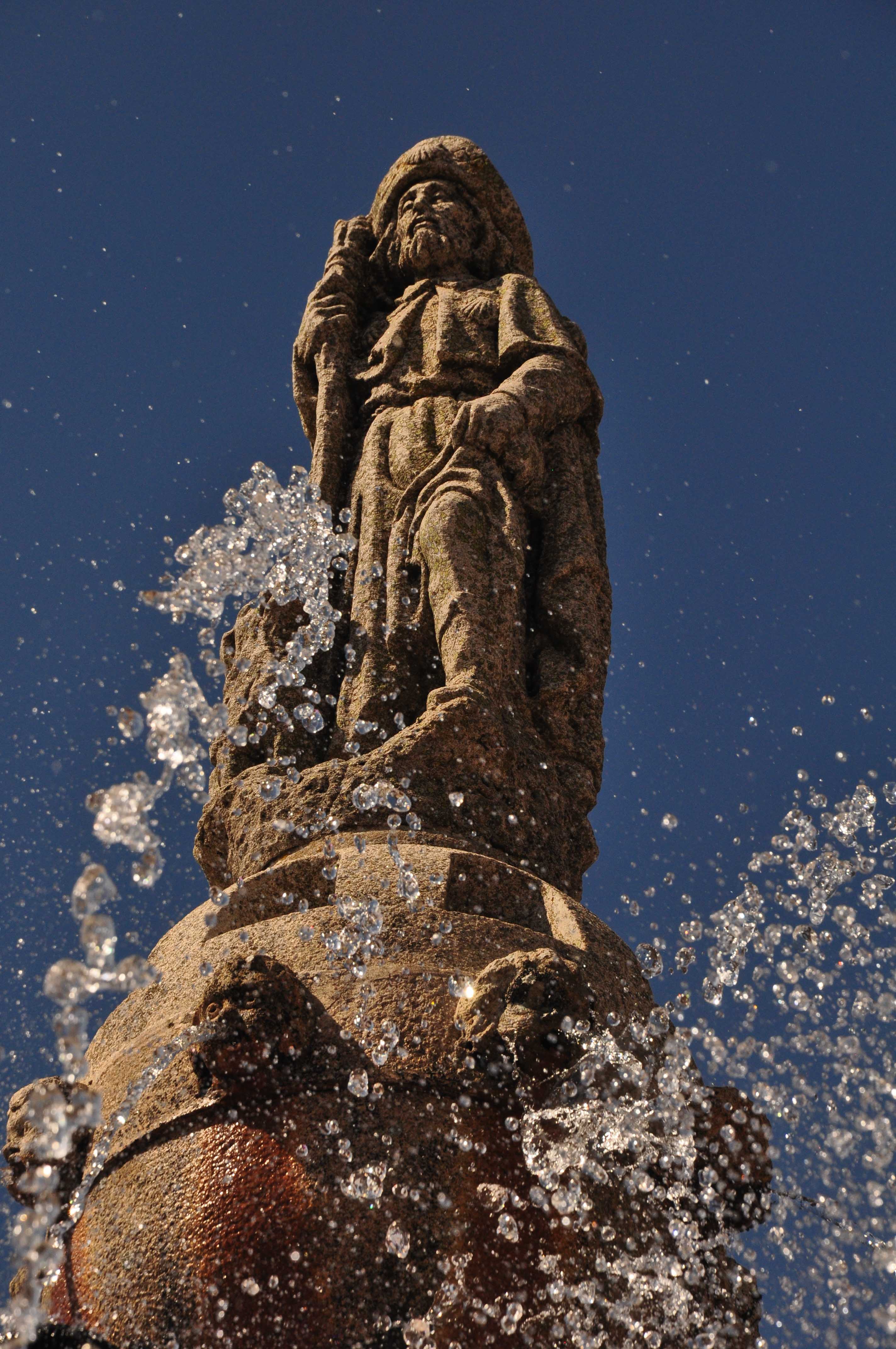 I’m not really sure how, but in the end I found sufficient proof to say that, without a doubt, Fuente de San Roque is the original name. The man reining over the fountain has a walking stick and a dog at his feet – he is most probably Saint Roch, a blessed man from Montpellier with a biography that oozes miracles right from the day of his conception from a barren mother. The dog on his right (not very visible in the first photo here below, but more so in the first photo of this post) is a clear symbol of Saint Roch: half dead in a forest he was saved by a nobleman’s dog who brought him food and cured his wounds and gave him the responsibility of being named Patron Saint of dogs. He is also lifting up his robes and showing his left leg, which apparently he tends to do to remind people of the wounds the dog cured (how sweet!) – or possibly a bubonic sore, because he is also associated with the plague (less sweet, honestly). This website, about saints and the symbols to recognise them in art, relieved me of any doubt. If you need more convincing however, I read here that Saint Roch is also often depicted wearing a cockleshell (symbol of pilgrimage, probably the one he went on to Rome) on his hat.