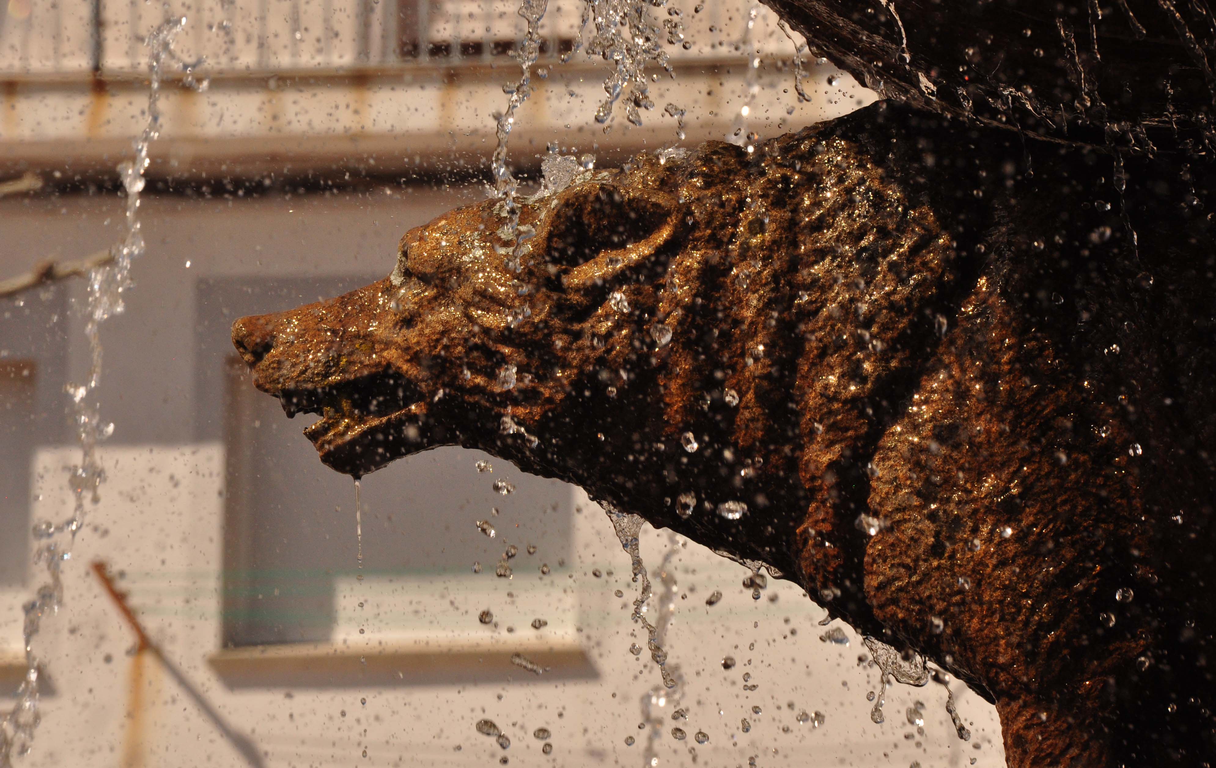 Here are some photos, depicting Saint Roch all the way up, some stylised bears (or could they be lions?) right underneath and the wettest, most annoyed wolves and terrified looking foxes underneath.