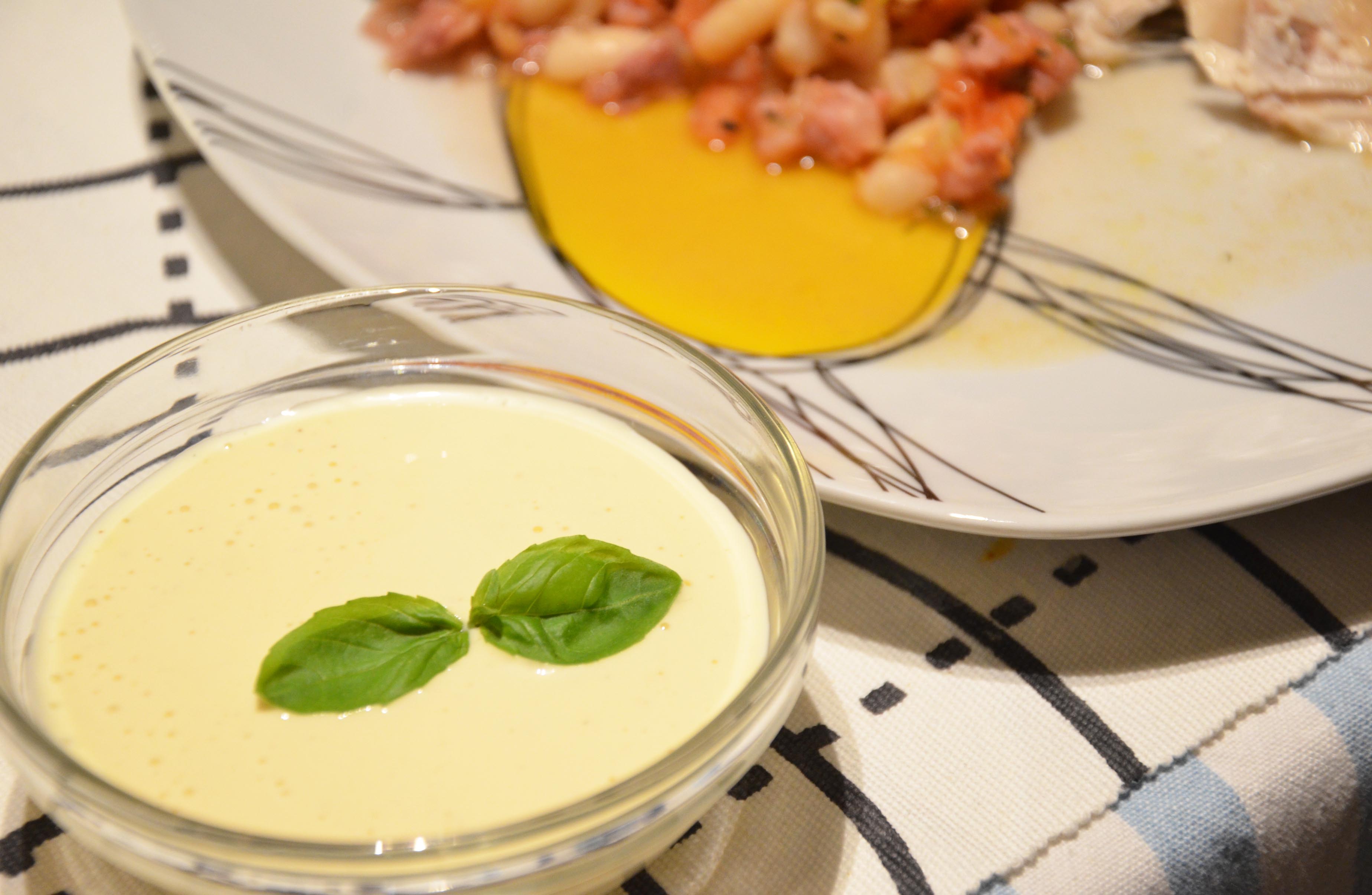 We had it as a sauce for Gordon’s Stuffed Chicken and it went really well. You can literally add anything you like as a garnish or blended into the sauce – whatever herb tickles your fancy. I would suggest thyme or parsley, but it really depends on you and what you feel like. I felt like basil, because I love basil and we just bought our new summer plant, so… I hope you enjoy your Magic Mayo and that you let me know if you have any feedback, comments or useful tweaks!