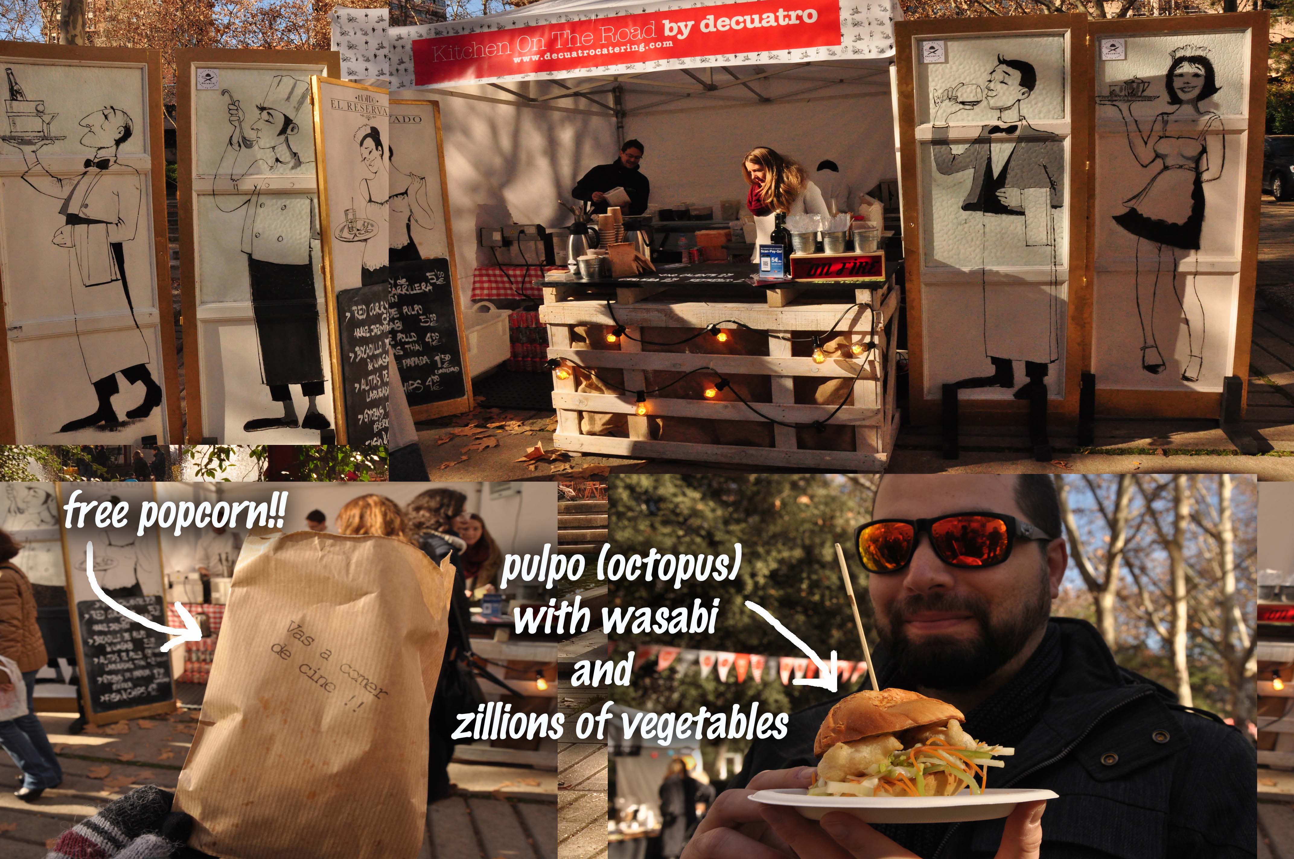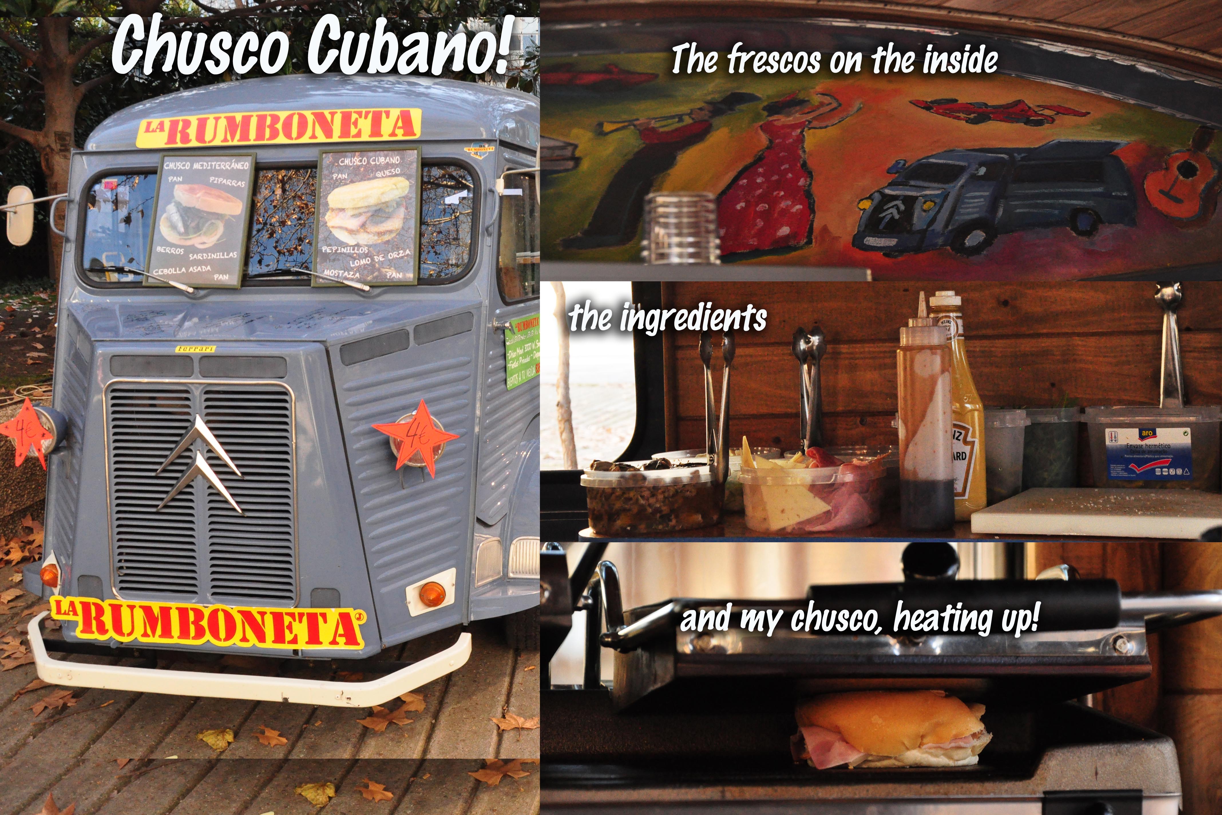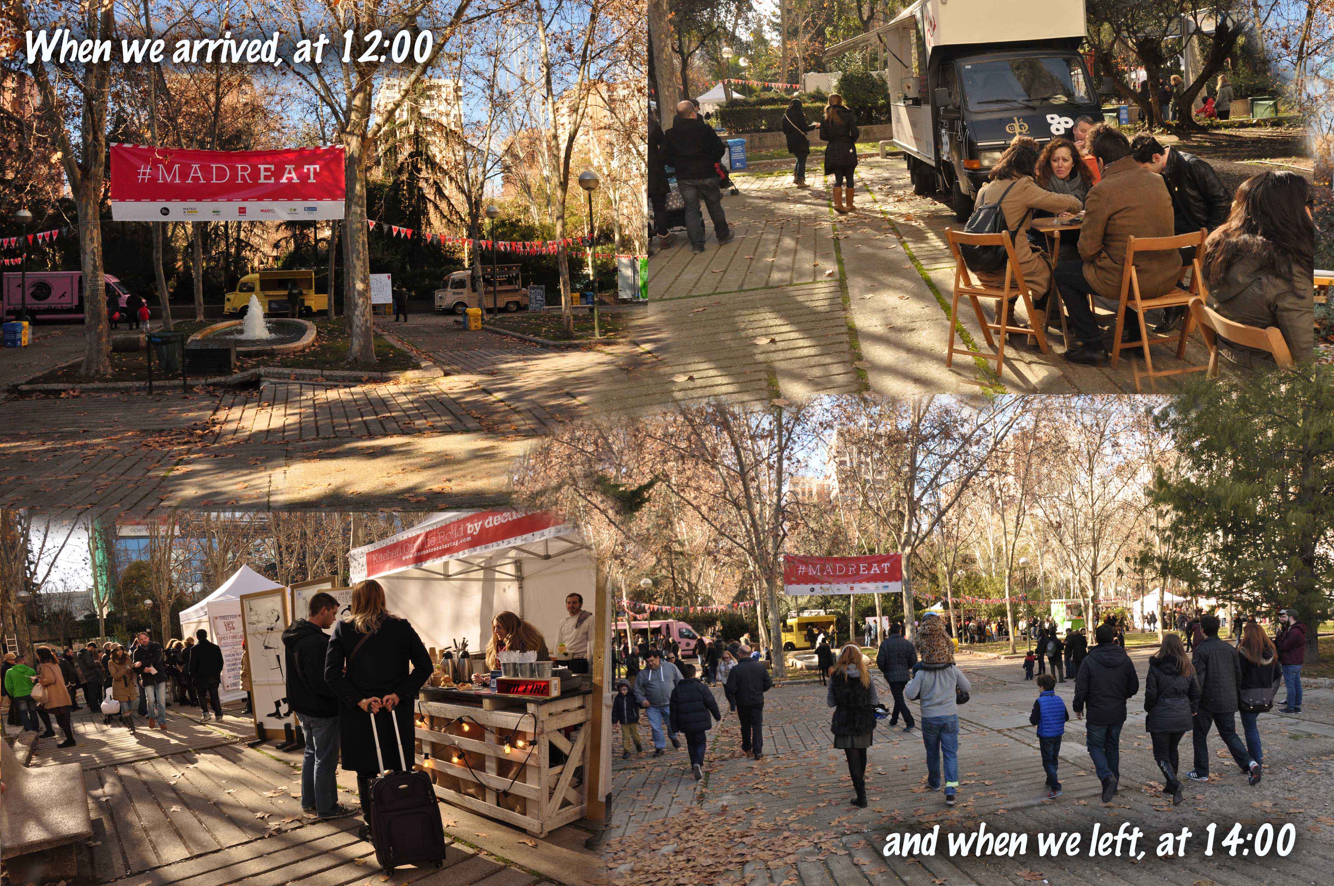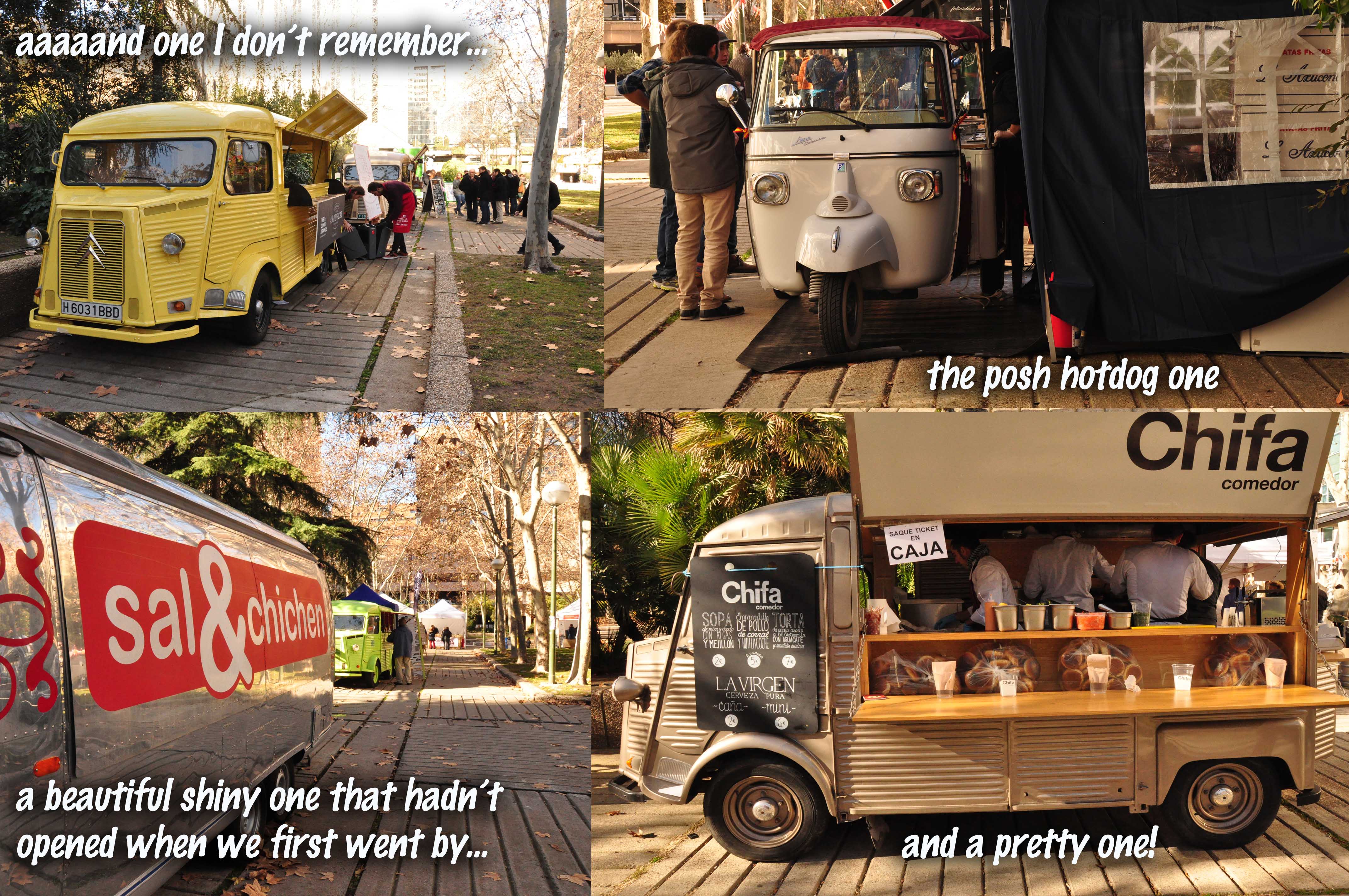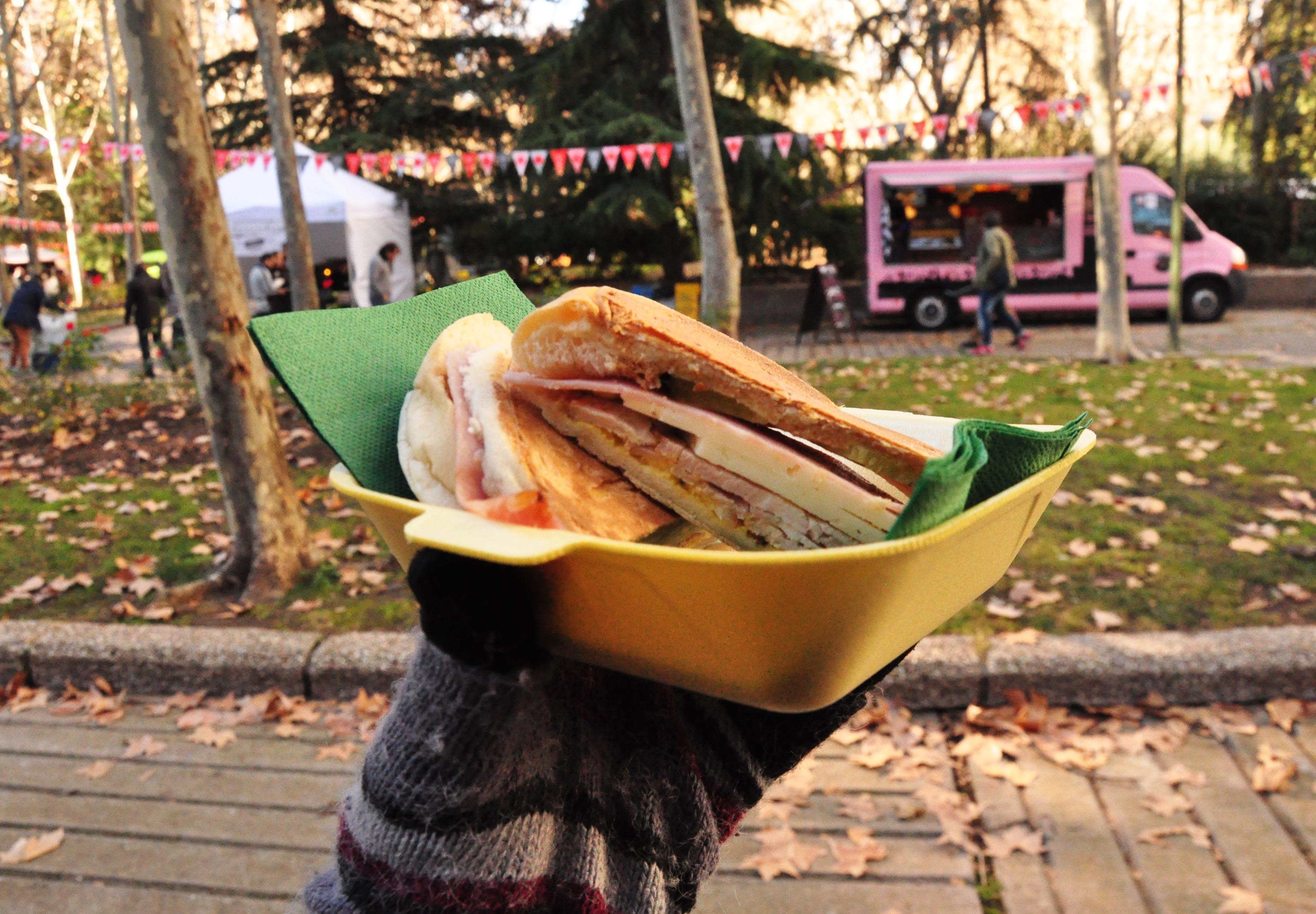 This morning we went to the gardens in which the trucks were set up. There were very few people when we arrived at 12:00, which was great because we managed to grab a vermut and start an exploratory tour, chatting to some hosts (some of whom gave us freebies, yay them!), and then start eating. First up, the best Vermut in Madrid. Immediately after, the chusco cubano from the film. We had to.