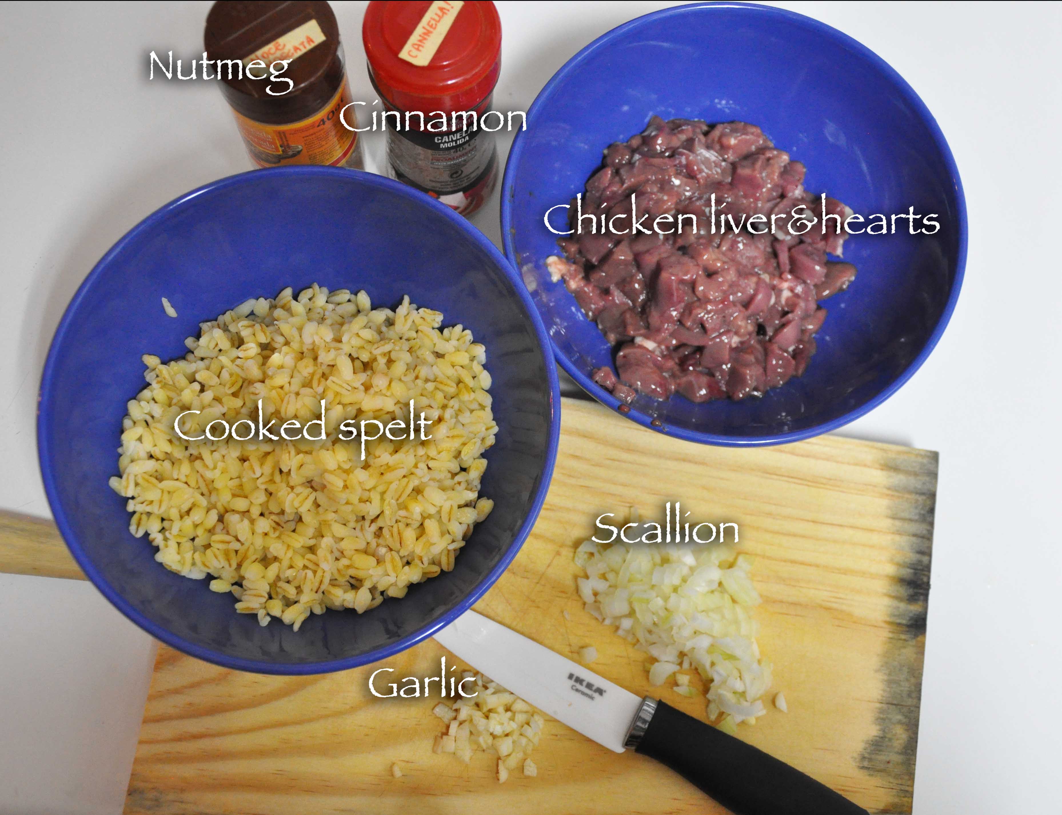 – remove from the fire and add the cooked spelt while the liver mix is still hot, so the spelt absorbs some of the taste.