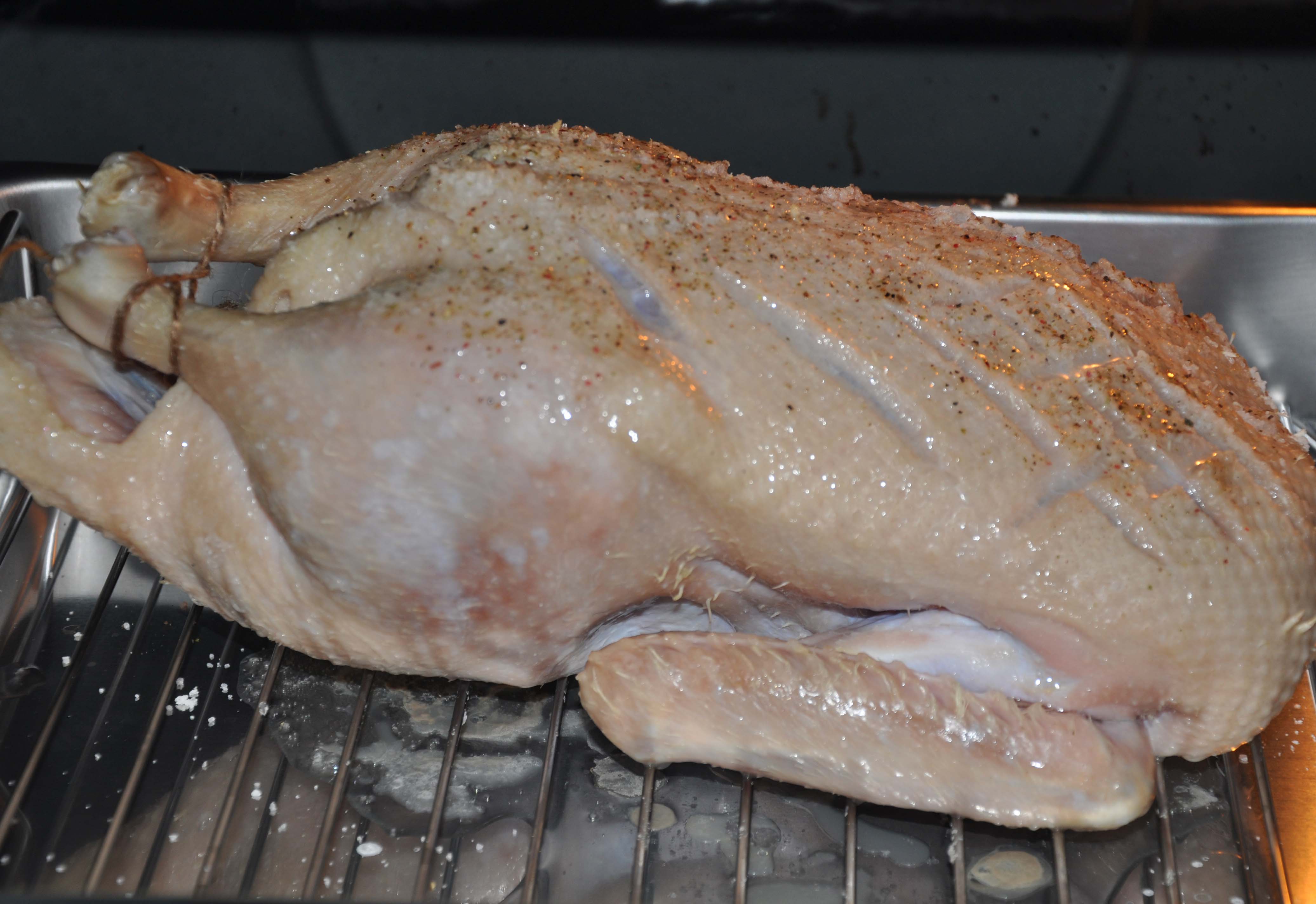 This is what it should look like after 1 hour. If you forgot to put or glasses on or if, for some reason, your camera fails to focus on the actual duck. Now what do you do? Flip it over (delicately), salt and pepper the backside and cook for 1 hour.