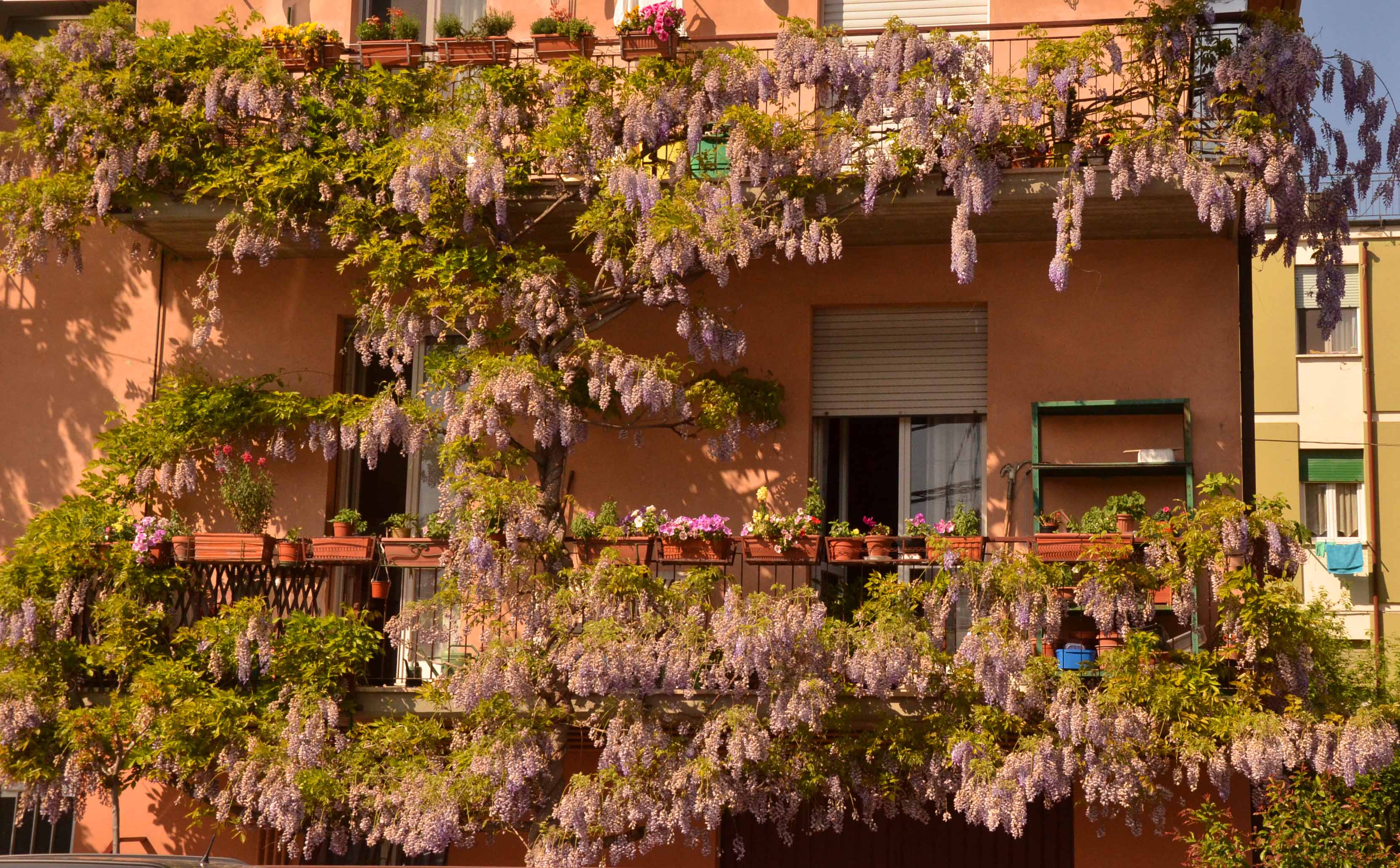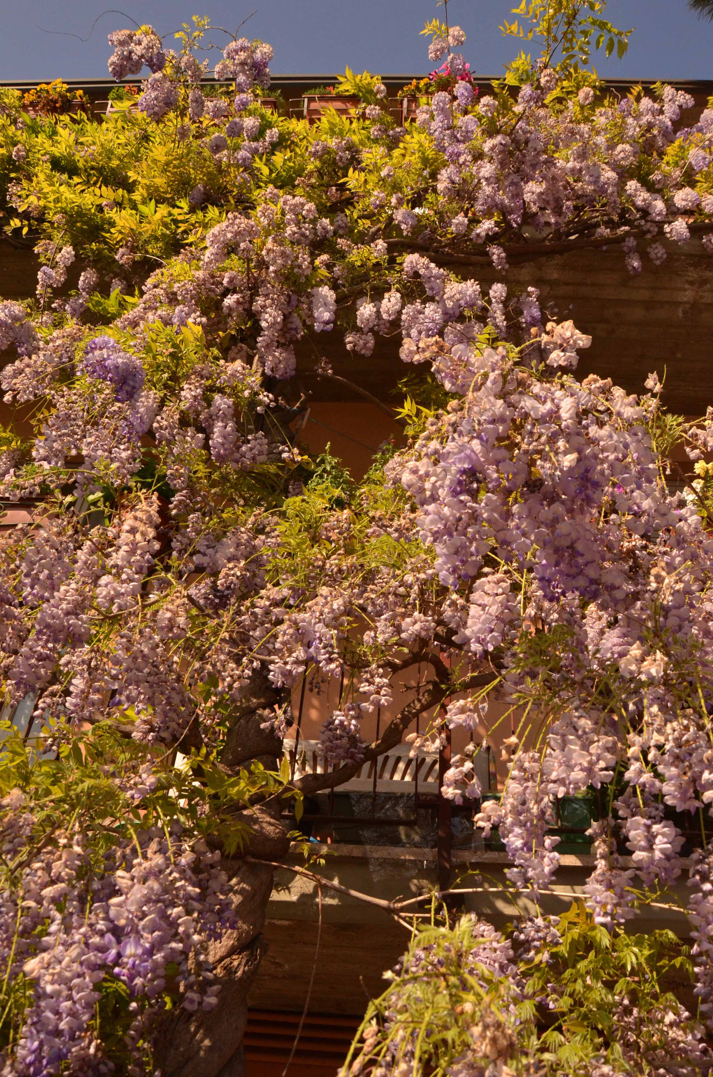 There are two house facing the stadium in Ravenna that are covered in Wisteria. We had one on our old family home once, gnawing into the back wall and creeping up the windows. My grandmother made me taste a handful of flowers once, saying they were really good and that, during the war, she used to eat them instead of candy. They tasted like raw leaves, rose water and nothing like candy.