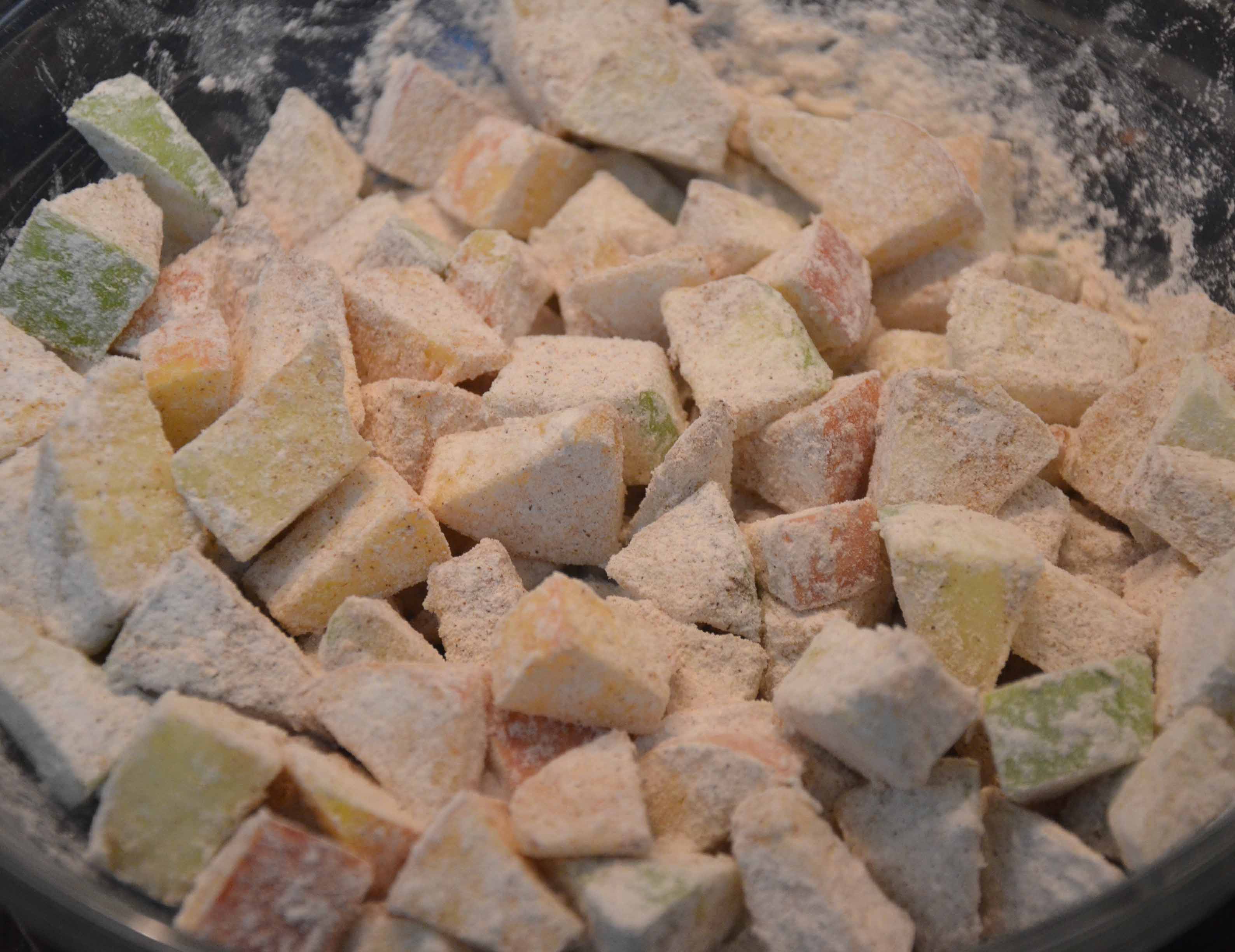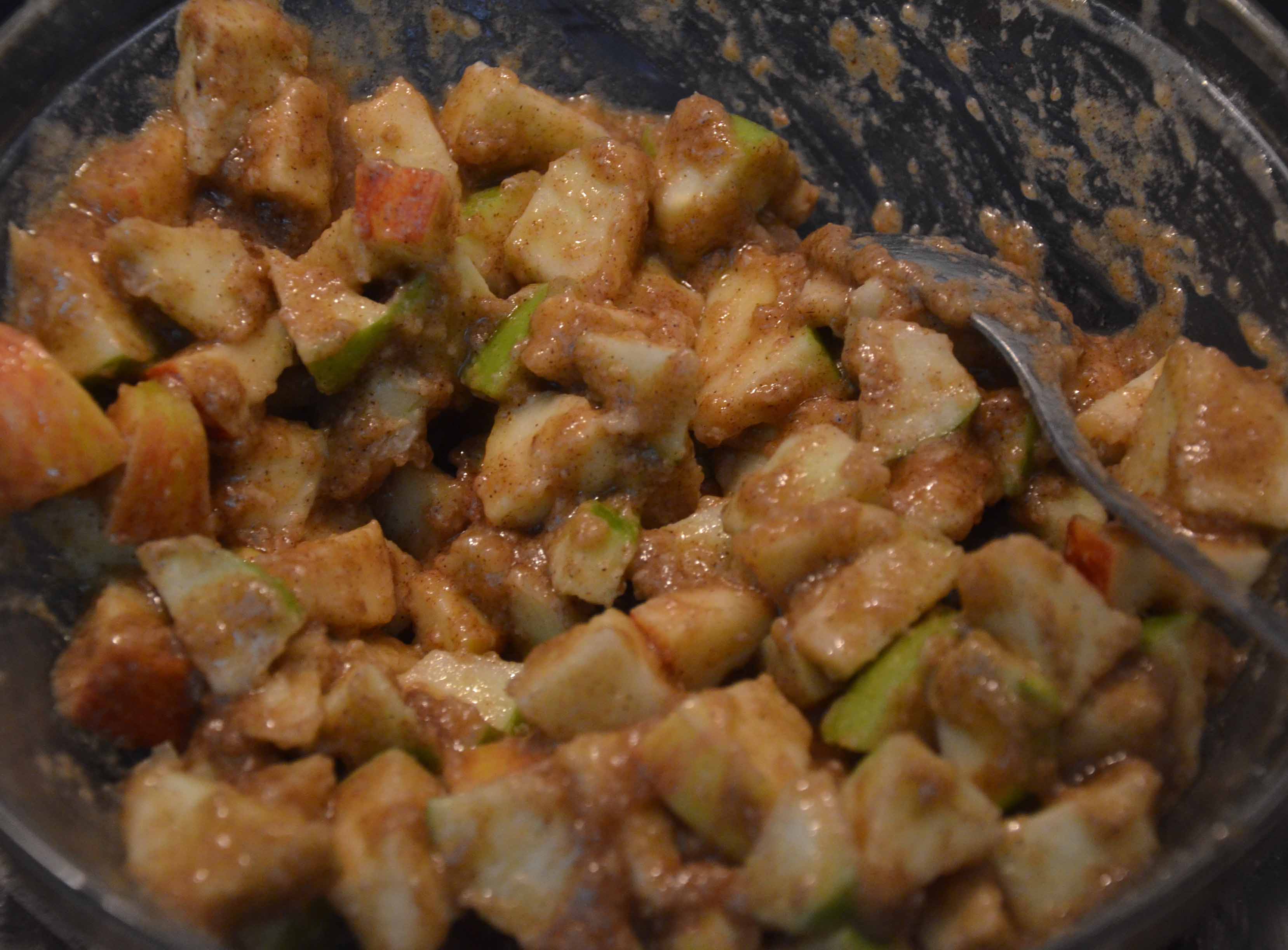 I had an array of old, old apples. Not quite mushy yet, but oh so very nearly. And not at all inviting to simply…eat. I say array because I had a granny smith (i.e. a “real” green apple), a red apple and another one that I had bought believing it was a green granny smith but actually wasn’t. It was like a mix between a yellow and green one. Having learnt at uni that there are more than 7000 varieties of apples, I guess the one I had was one of them.