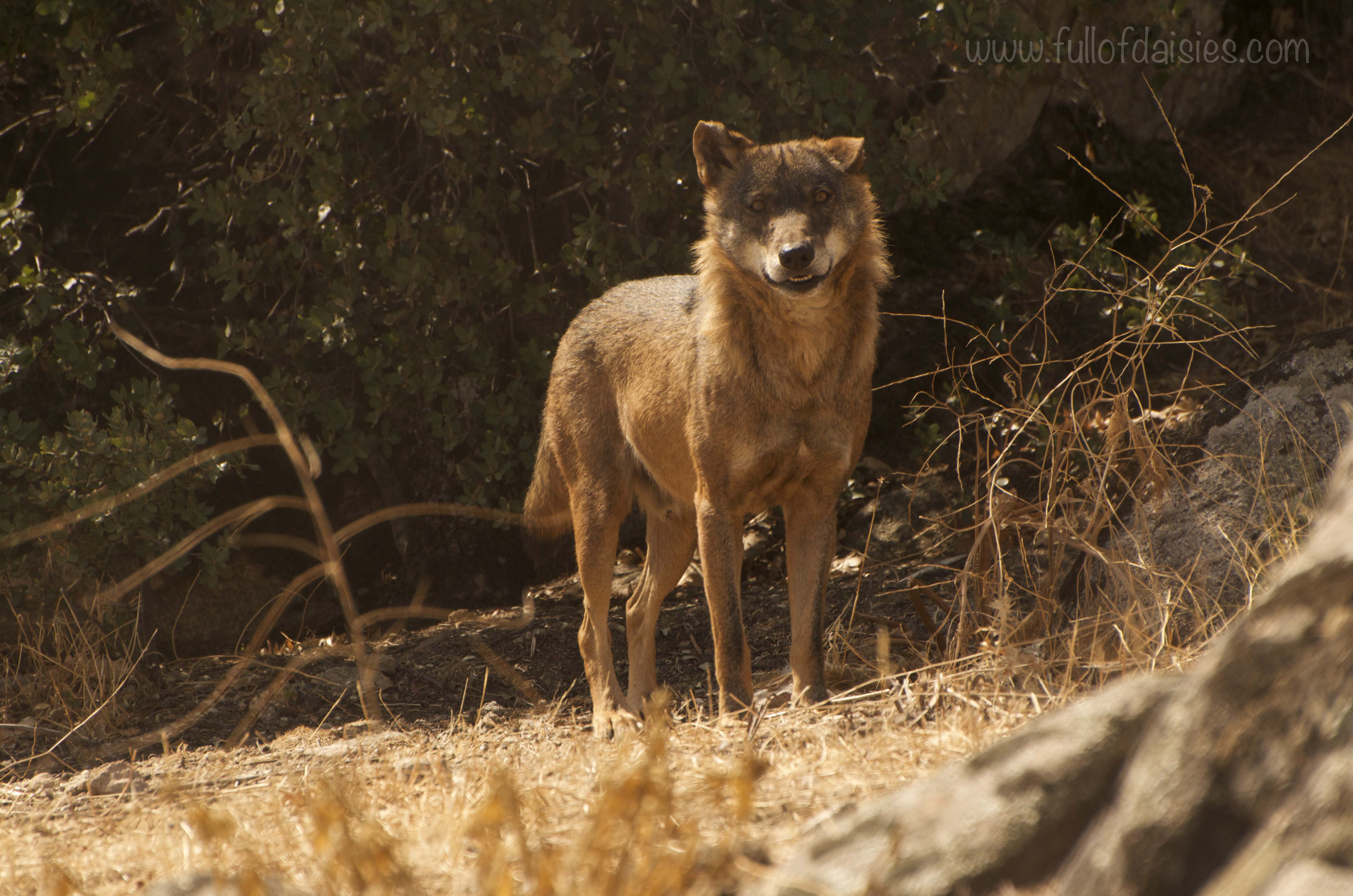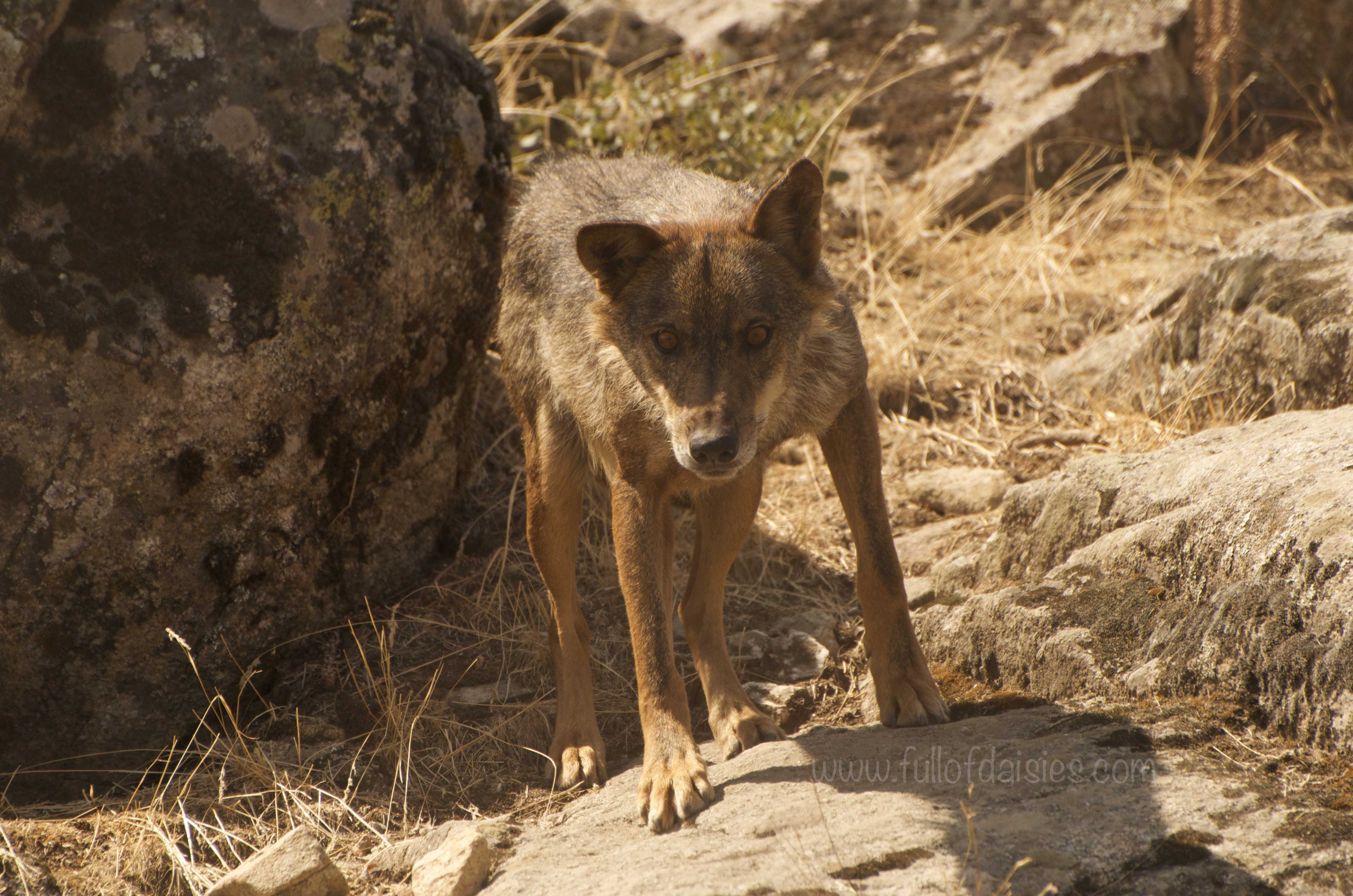 The animals we enjoyed the most were the Iberian wolves. A different subspecies to the Italian and European wolves, the Iberian wolves are thinner, smaller and a more rusty colour. I found them very beautiful. The keeper who came to feed them told us that the group we were seeing was composed of three solitary individuals, two females and one male, who had been kicked out of the main group. Three renegades that definitely looked the part. There was another enclosure with two wolves in it but it wasn’t accessible to us visitors.