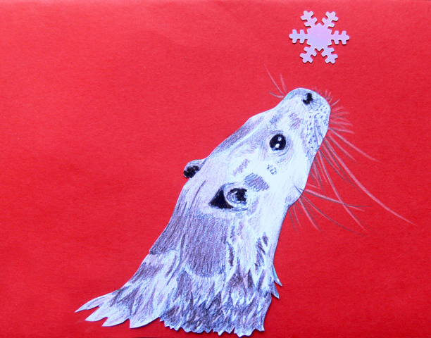 Every year I try to send out handmade Christmas cards – about thirty are made and sent around the 12th of December. When possible, I like the card to reflect something that has happened during the year, and that year otters were the theme.
