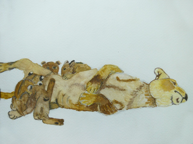 Category: Arts&CraftsTags: animal, art, artist, baby animal, lion, lion cub, lioness, memory, watercolour
