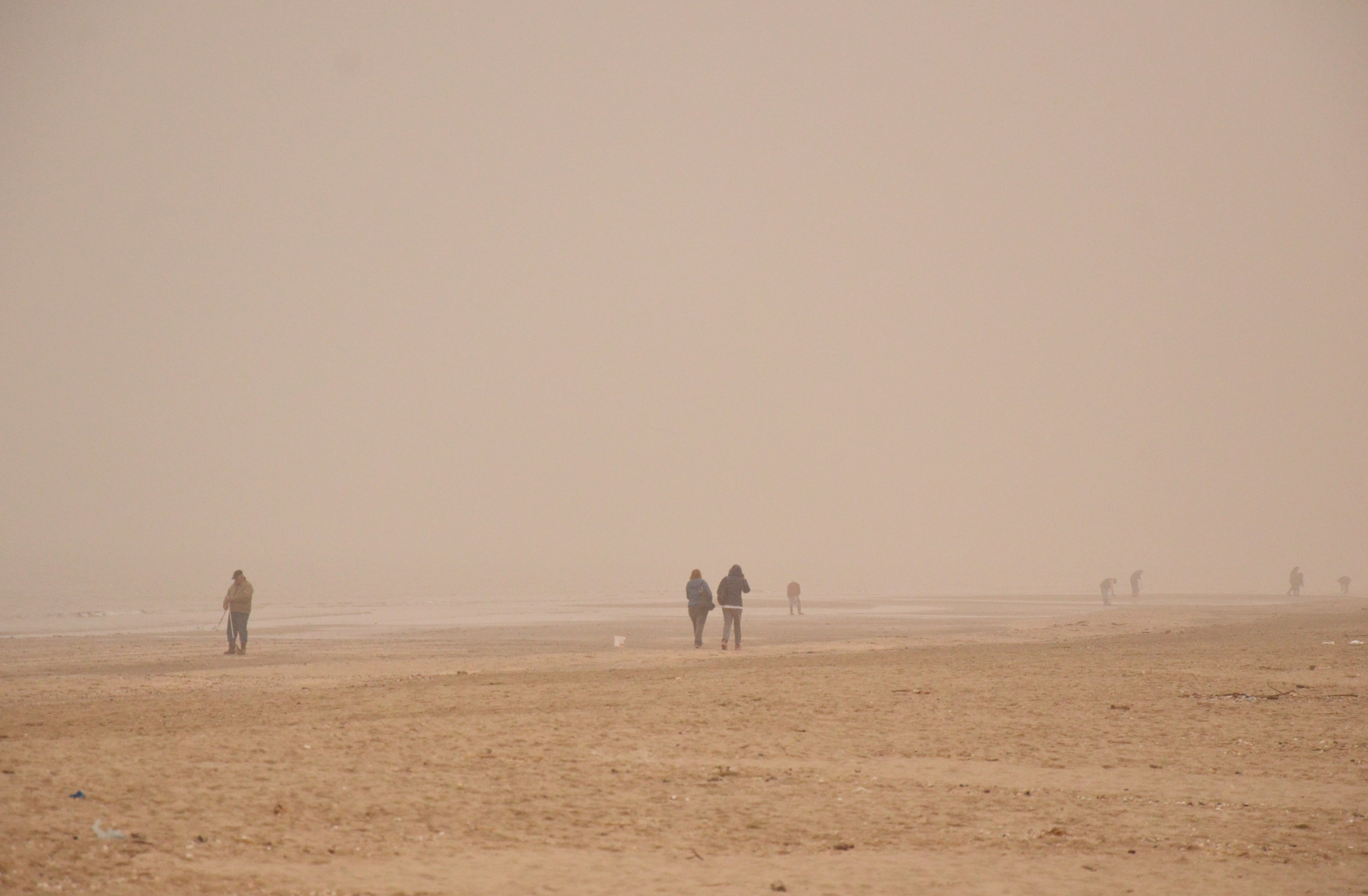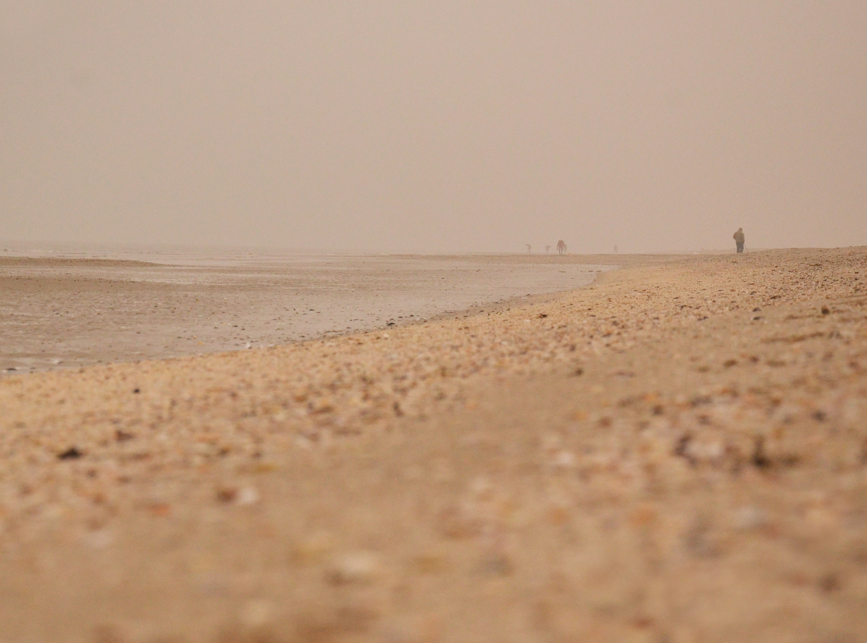We stopped by the sea. The Adriatic sea. There were many more people than we expected. Some walking, most foraging for clams. And there was fog. Not a lot of it, but enough to make a difference.