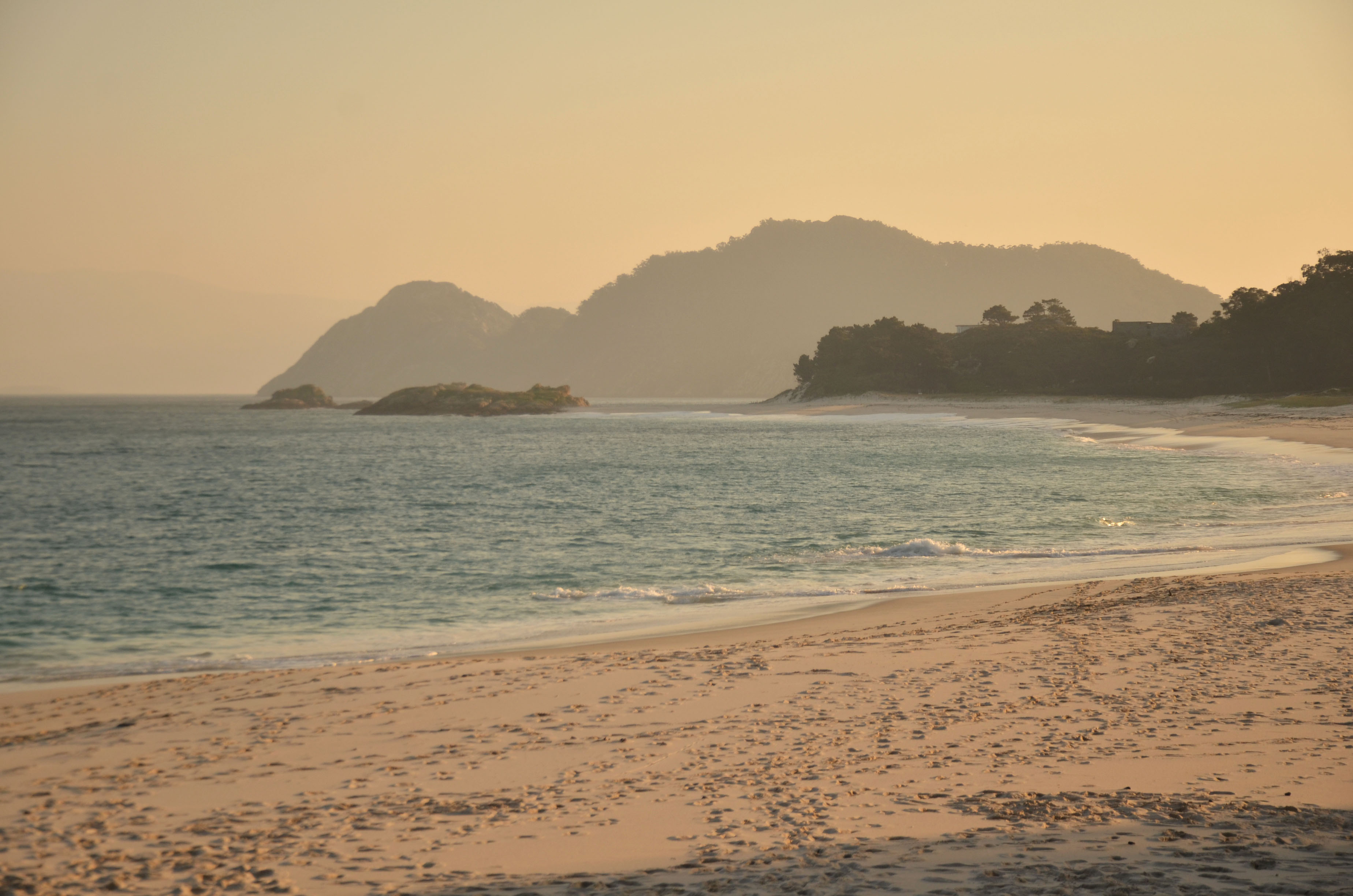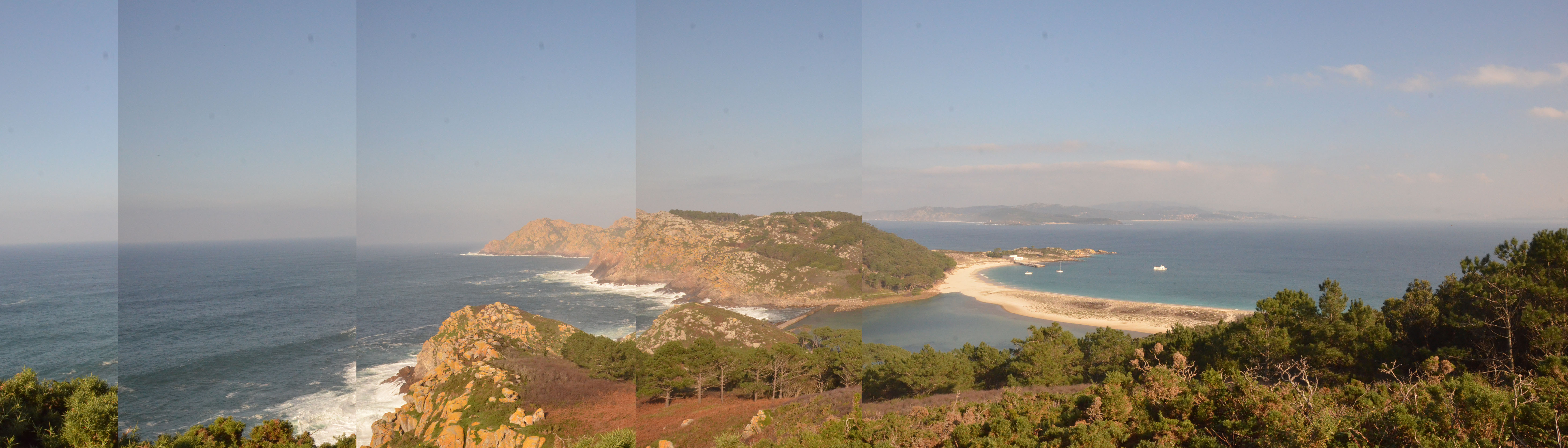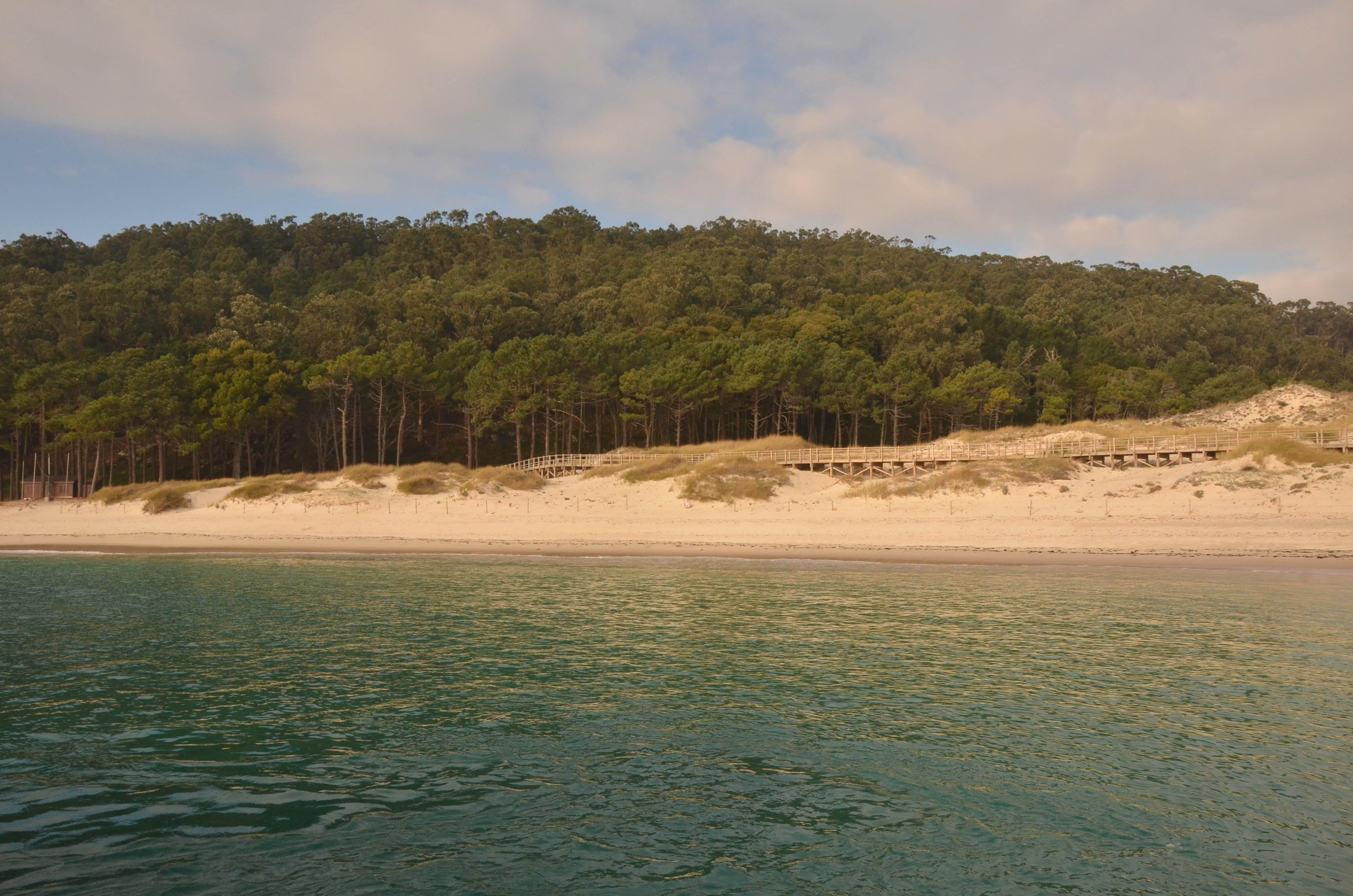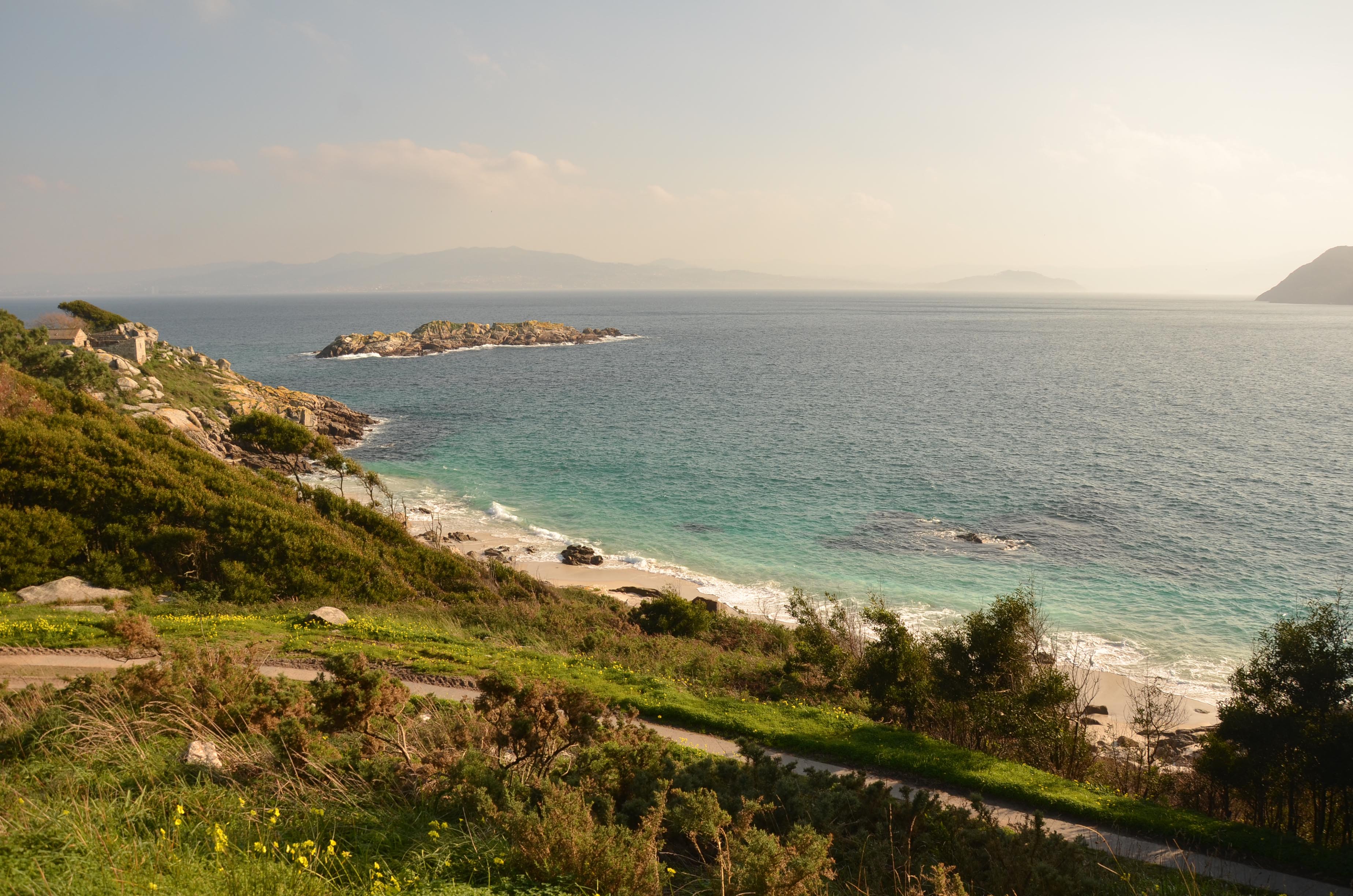 We boarded a little ferry that, in 40 minutes of uninspiring views took us to the Isla Cies, one of the four or five islands that sit in front of Galicia. A natural park, very strictly managed, that only allows a certain amount of visitors per year and closes in winter…except this weekend! Aren’t we lucky?