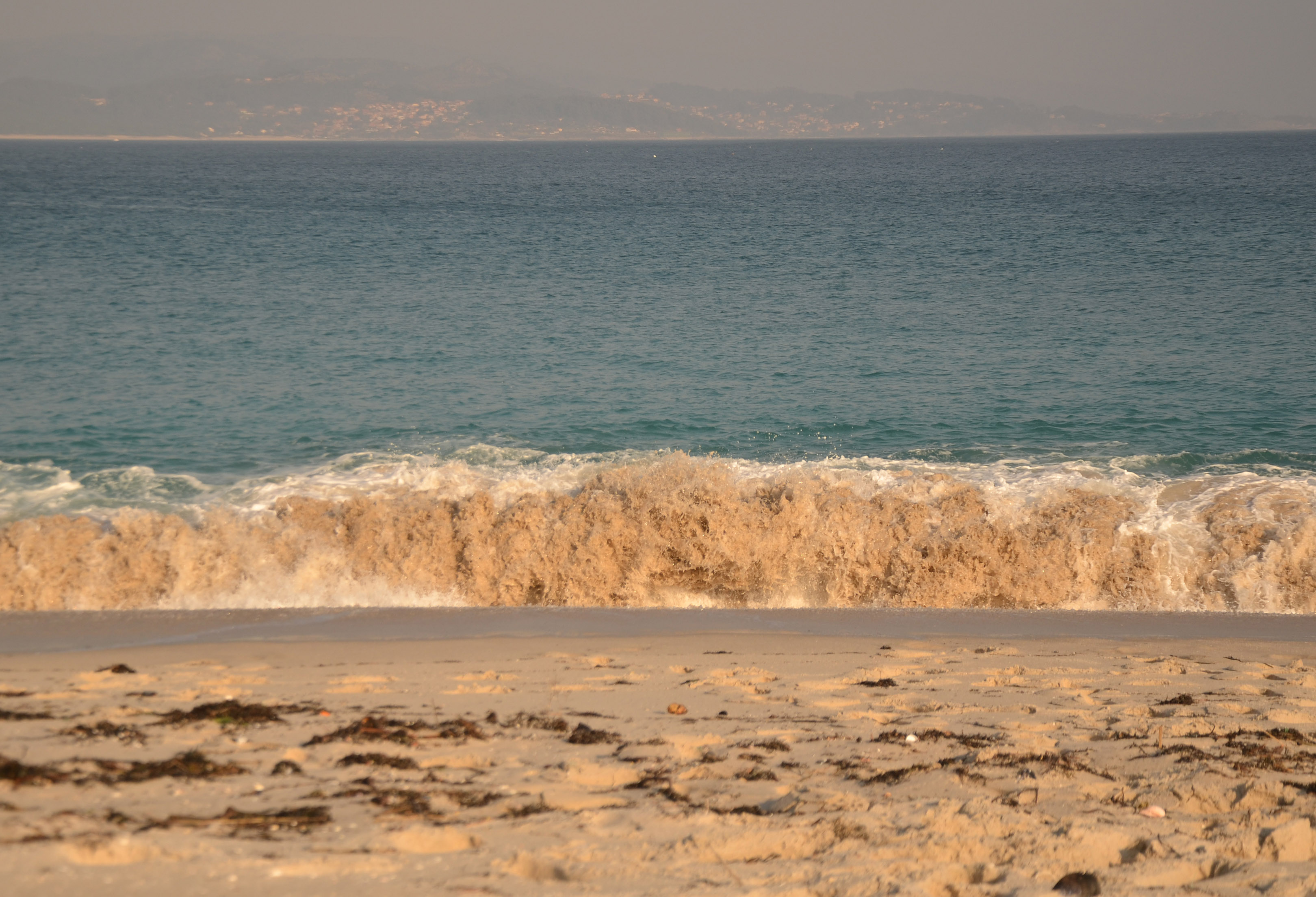The water was crystal clear and must have been really deep, because the waves that crept up broke right on the sand in front of us.