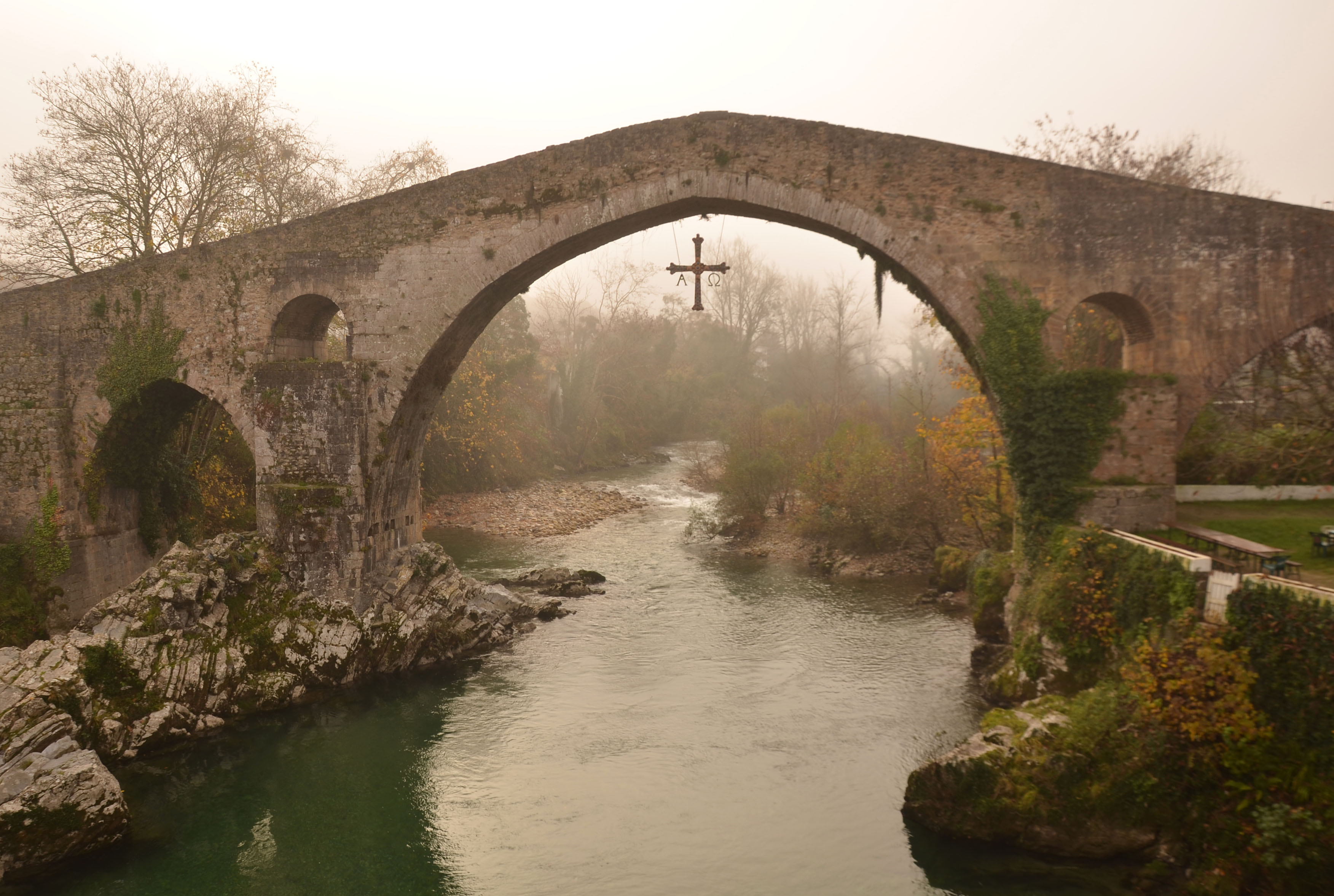 So we settled in a restaurant that was very good (but a bit too expensive) and that was, we found out when we went to search for the car, right next to the famous Roman bridge of Cangas de Onis.
