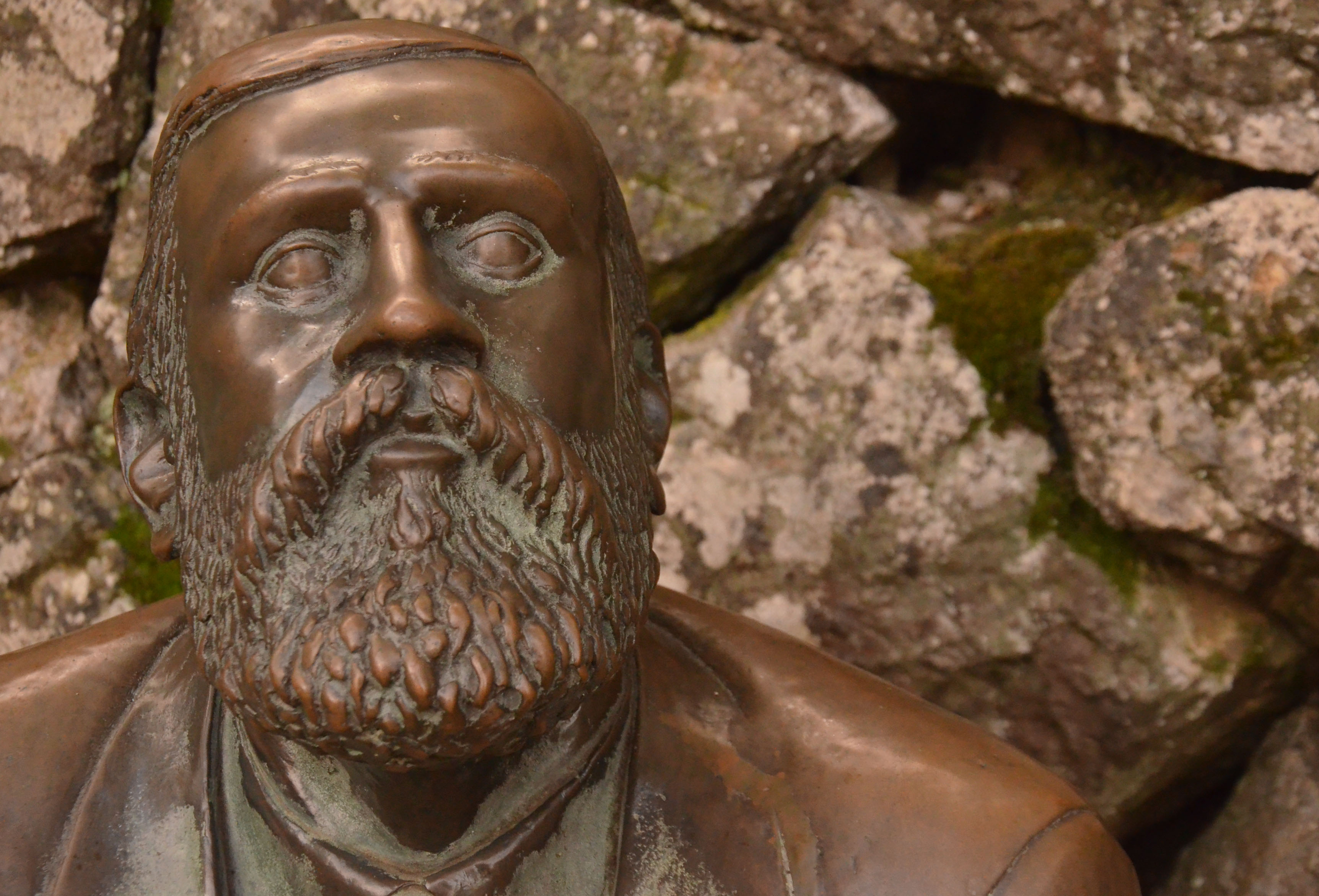 Gaudi, in bronze, sitting in the garden serenely contemplating his finished work of art.