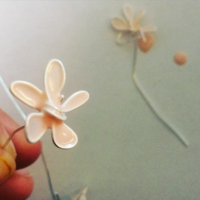 - Put a sheet of paper to protect whatever is under the flowers you’re making. The nail polish will drip, even if only at the third flower you make when you’ve decided the paper was useless because they don’t drip.
