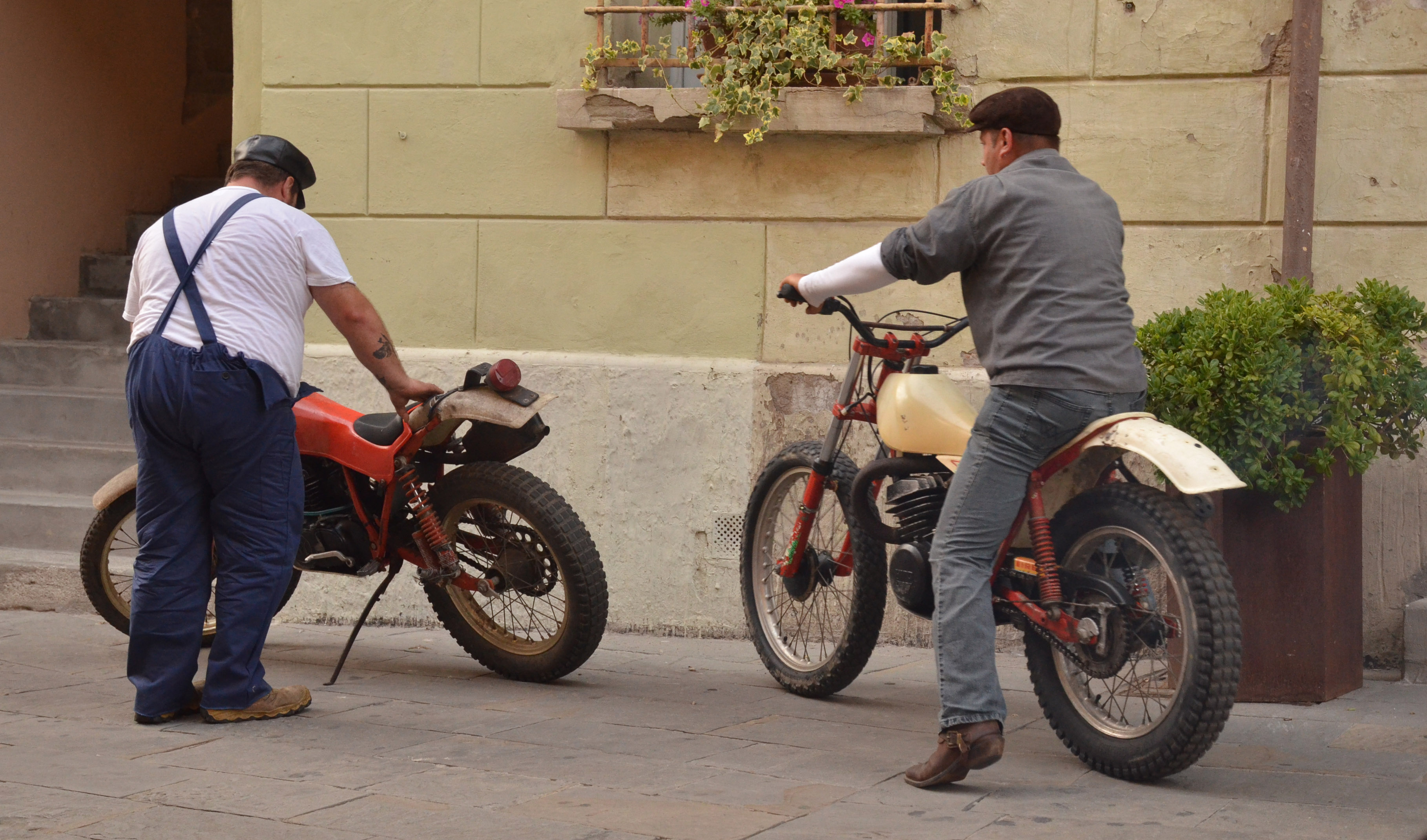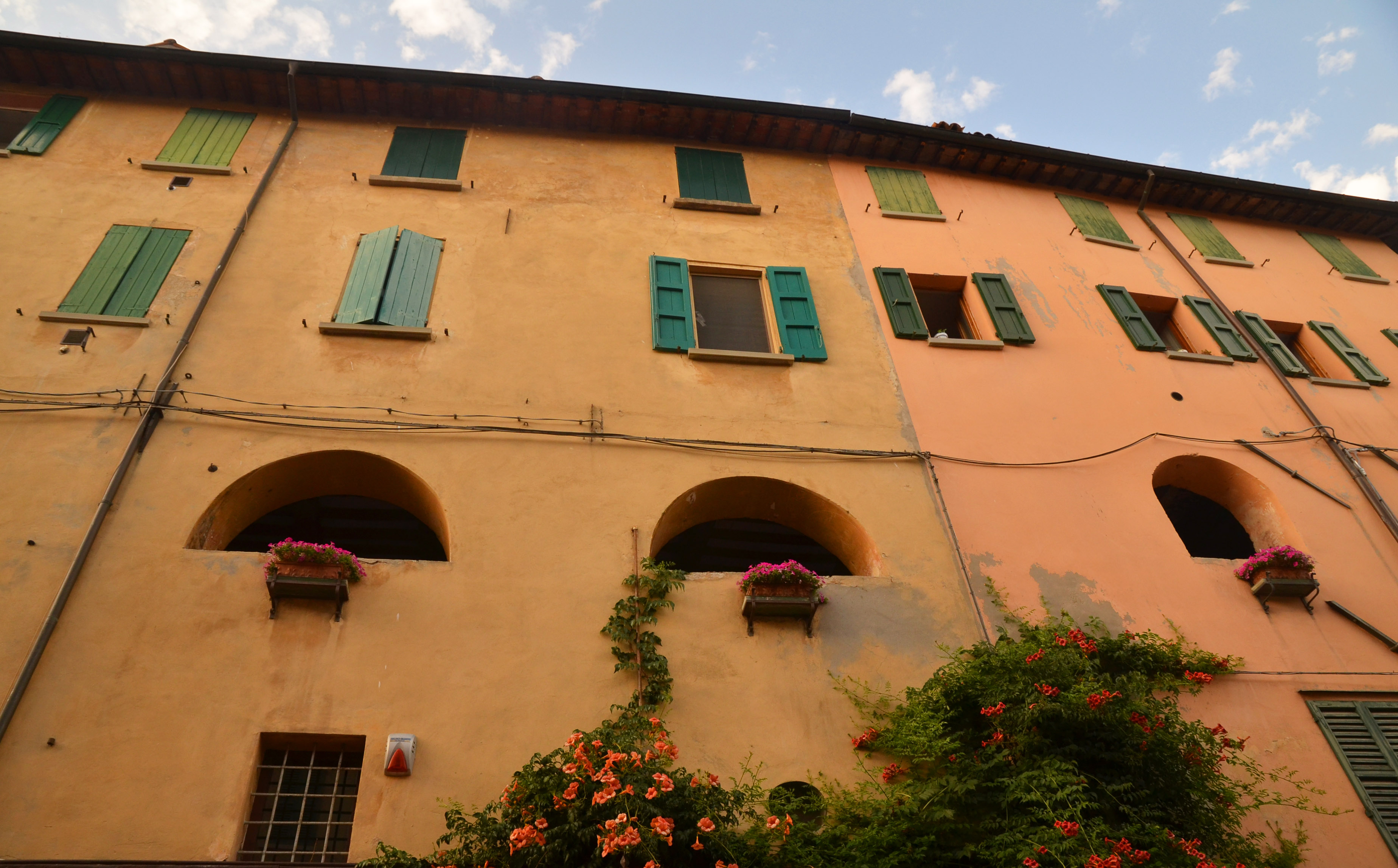 Brisighella is a tiny medieval village in the Italian Apennines between Romagna and Tuscany. When we went, there was a vintage festival, and I bought the prettiest earrings. We also saw another very nice pair that cost 500 Euros so I didn’t get those. There was a vintage bicycle exhibit and two guys going around in vintage motorcycles. There were vintage posters and vintage shoes for sale. We walked around, then sat down and people-watched in front of the tiny street with the colourful houses. Very cute!