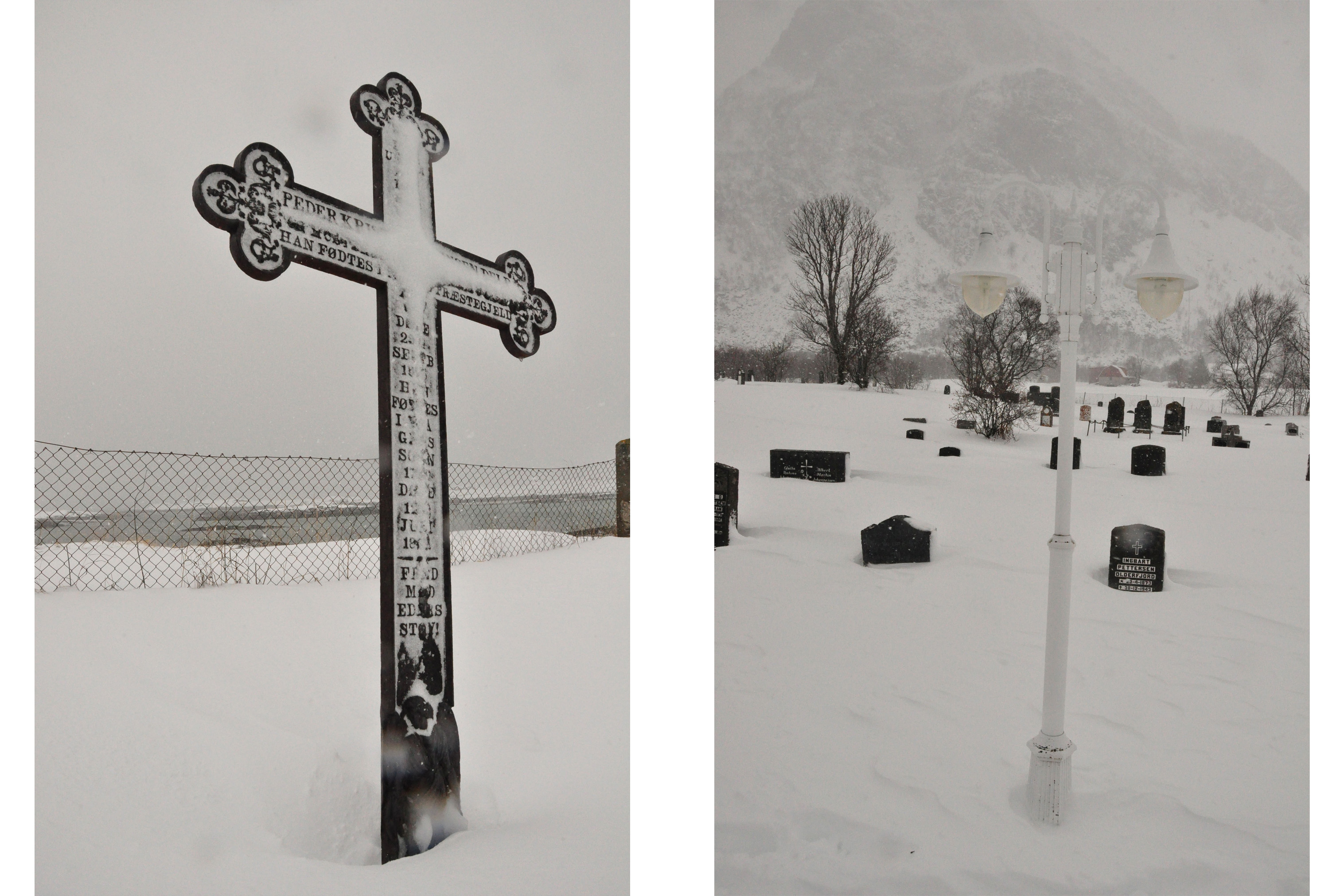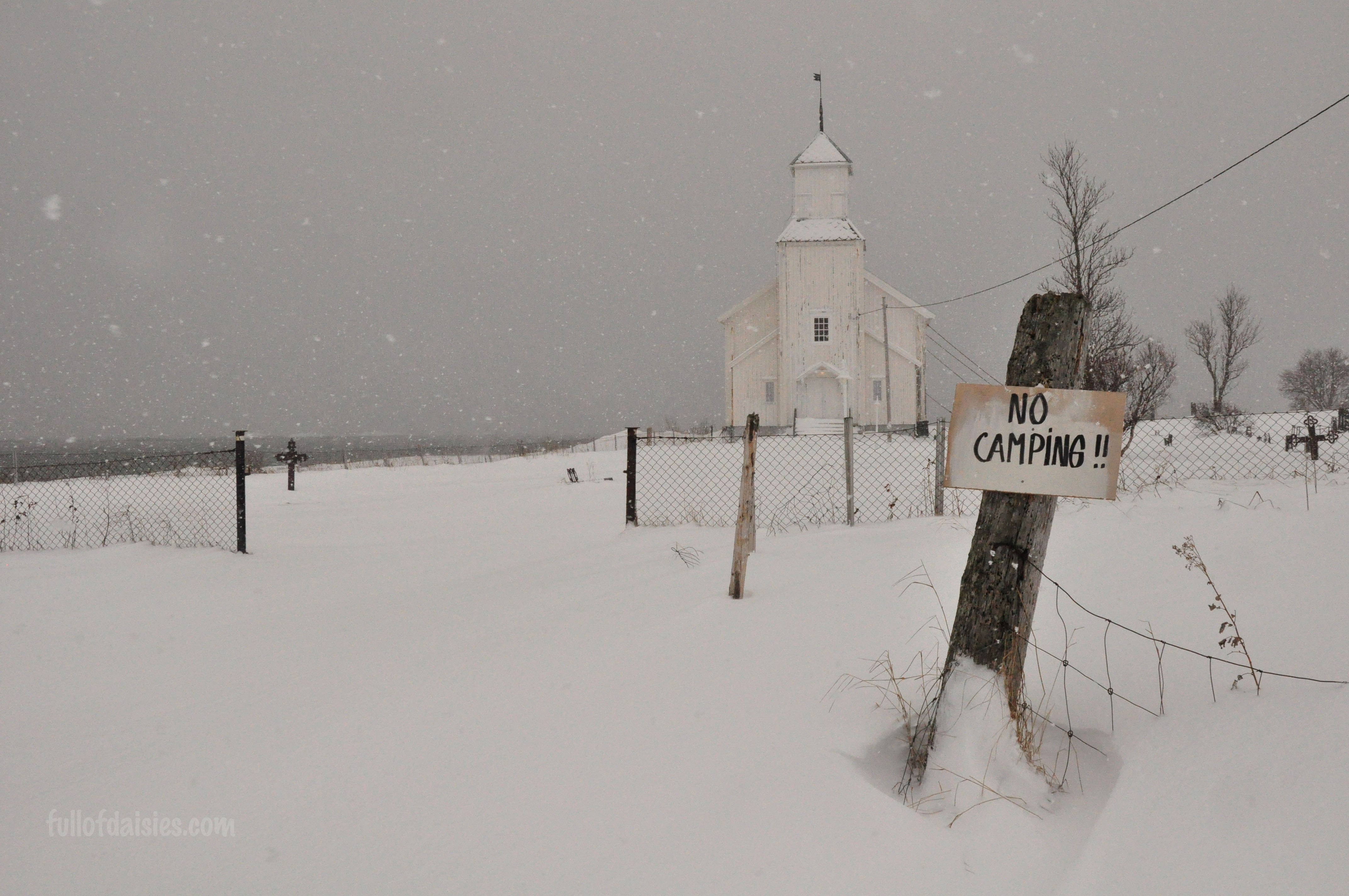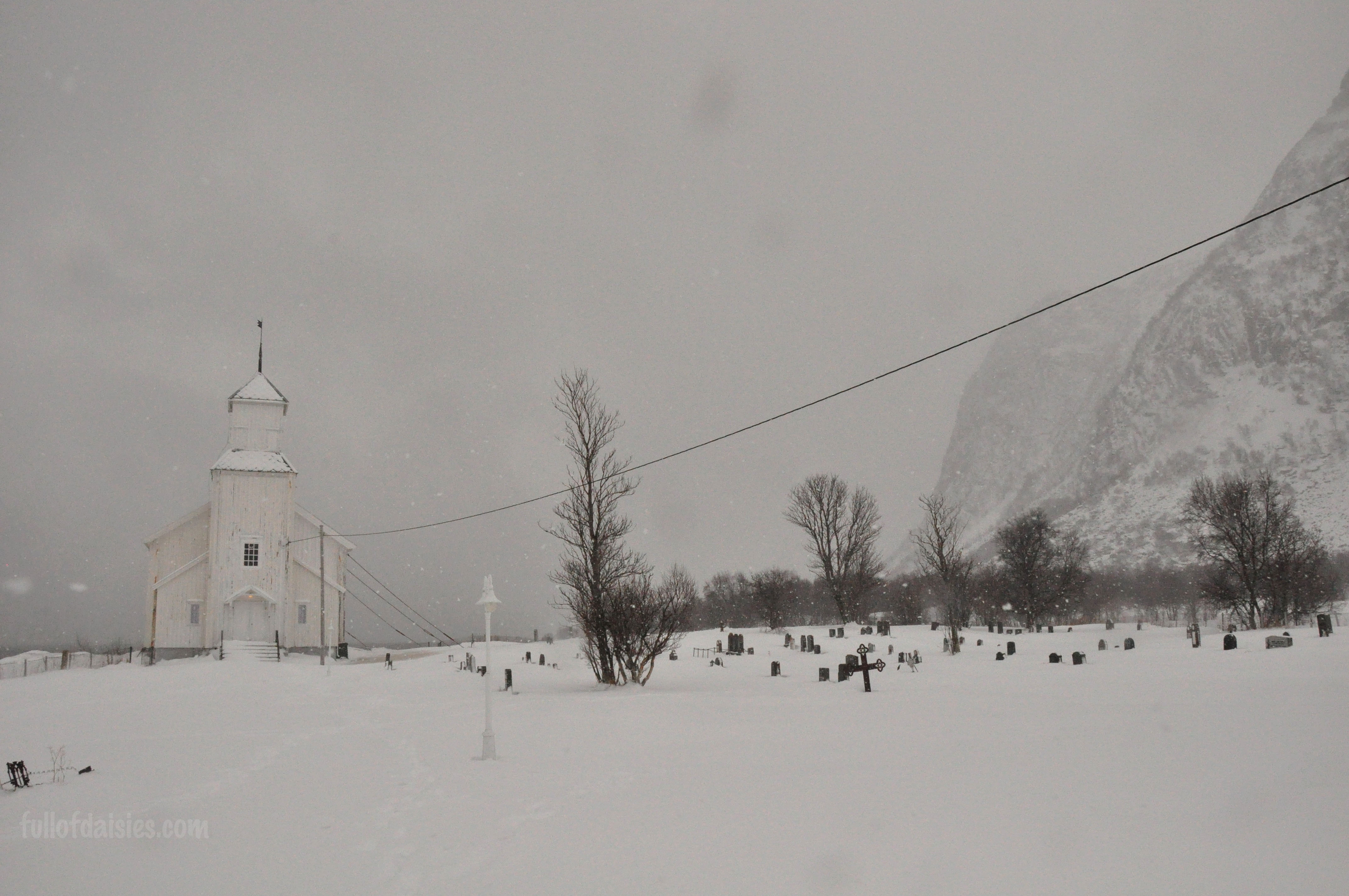 We stopped at this church on the way to somewhere. My father had it dogeared in the guide book and we got off the car in the light and breezy beginning of a snow blizzard. Oh yes, I forgot to mention – we went to the Lofoten islands in March.