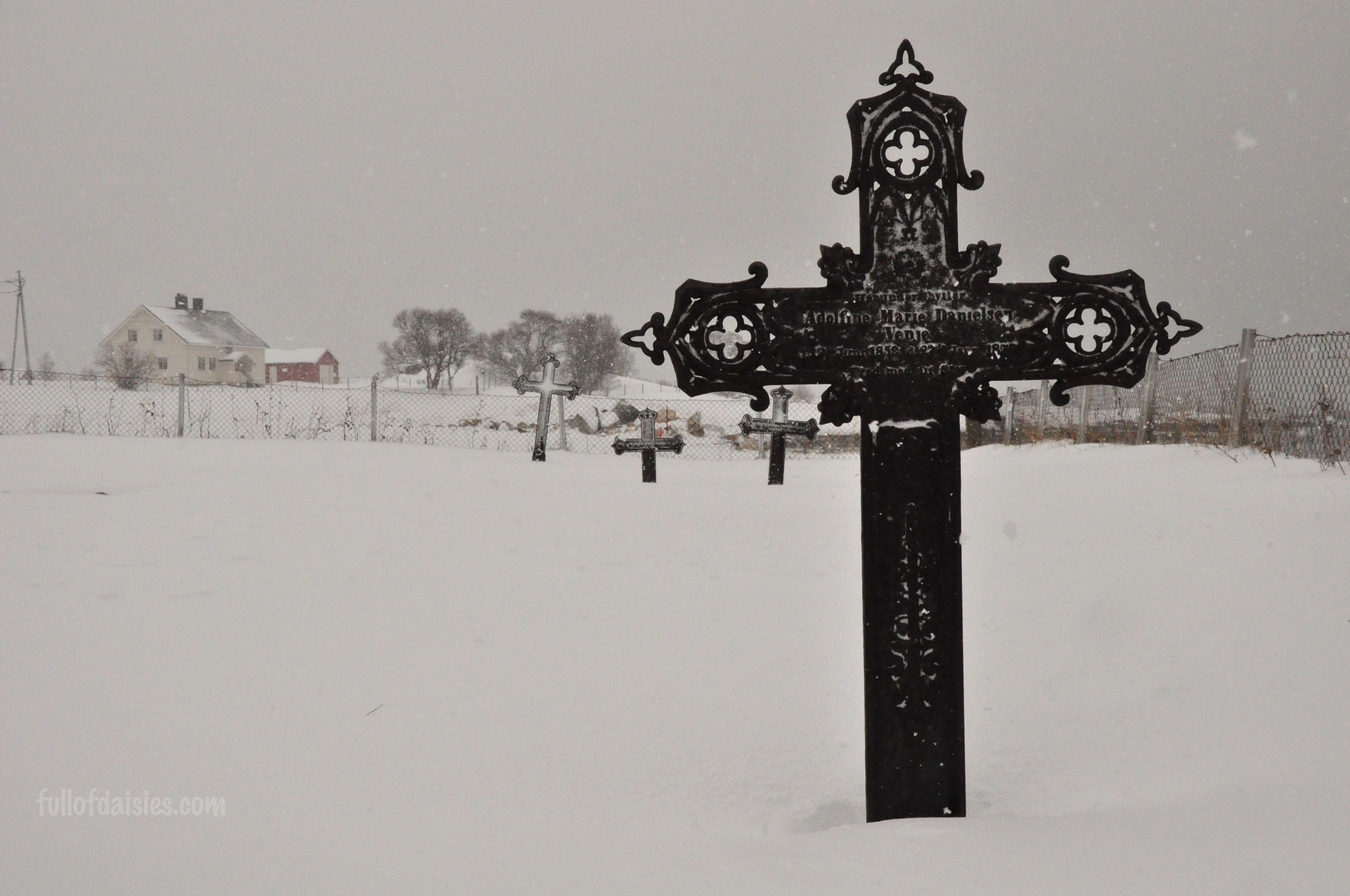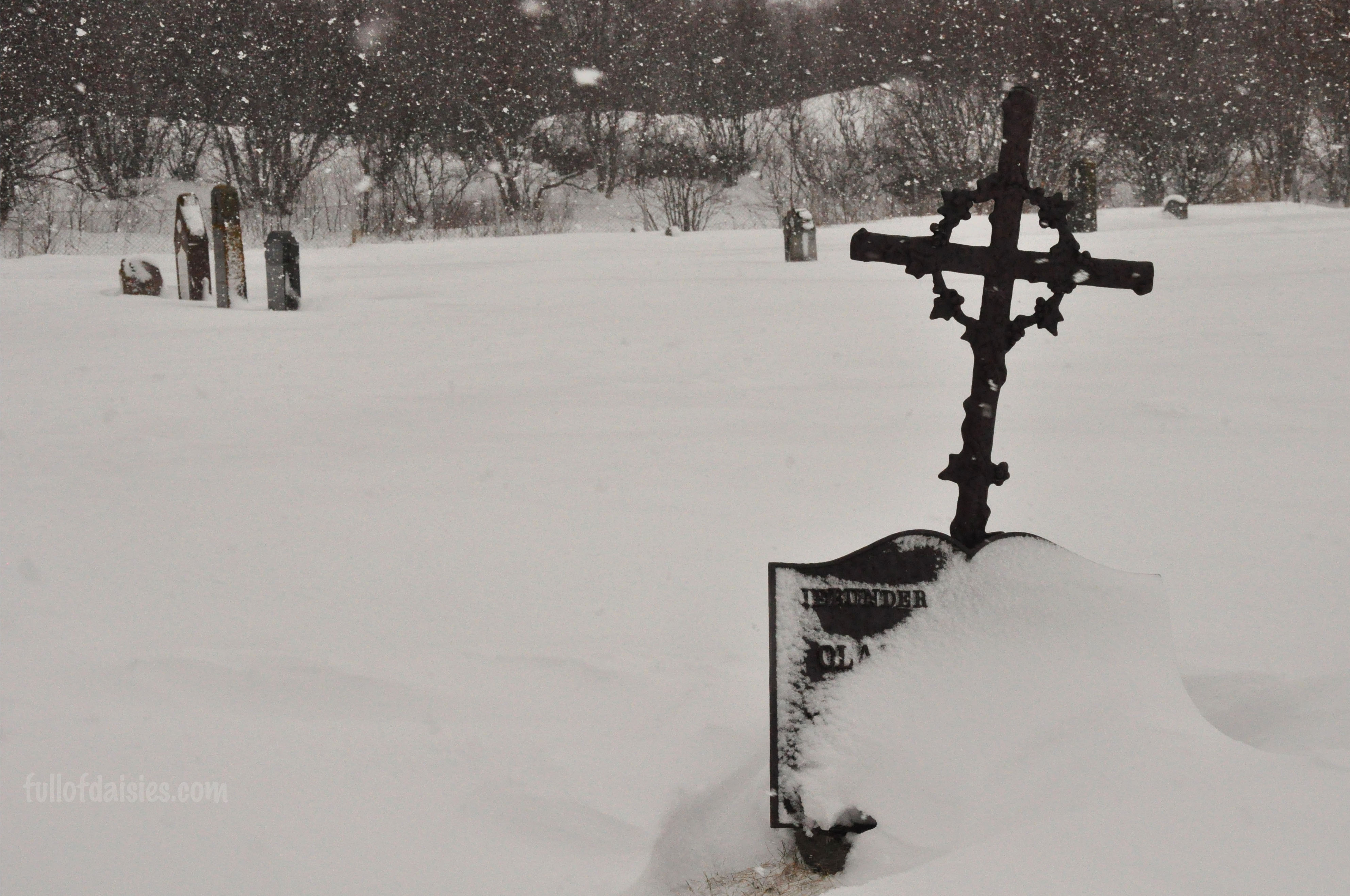 So off we get, in the middle of nowhere, and start clumping through the snow towards a tiny white church further down. And as we walked, the snow became stronger and the cold sharper. But still we walked and took photos.