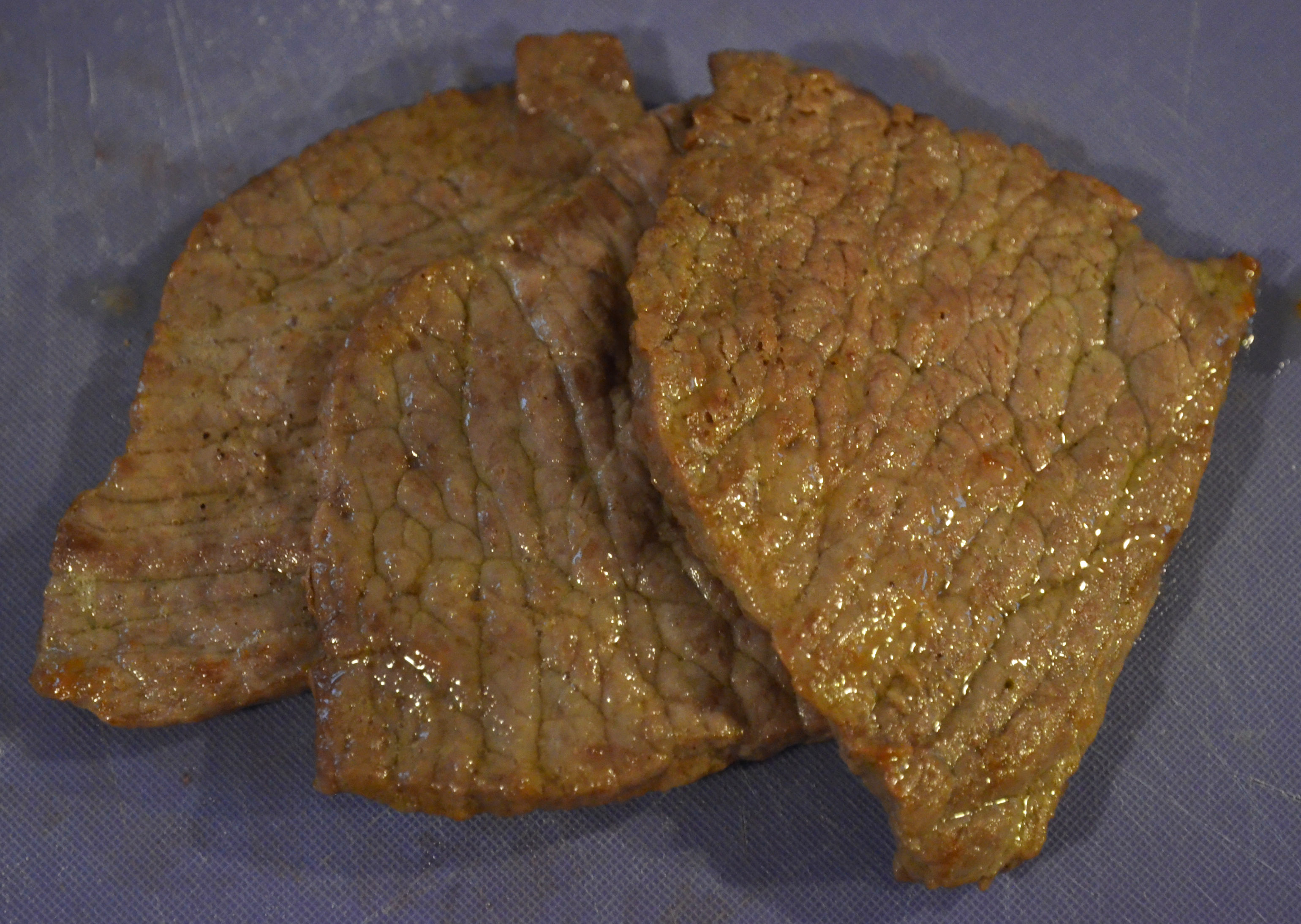 Heat a non-stick pan and sear the beef until you have a medium cook. Add some pepper.
