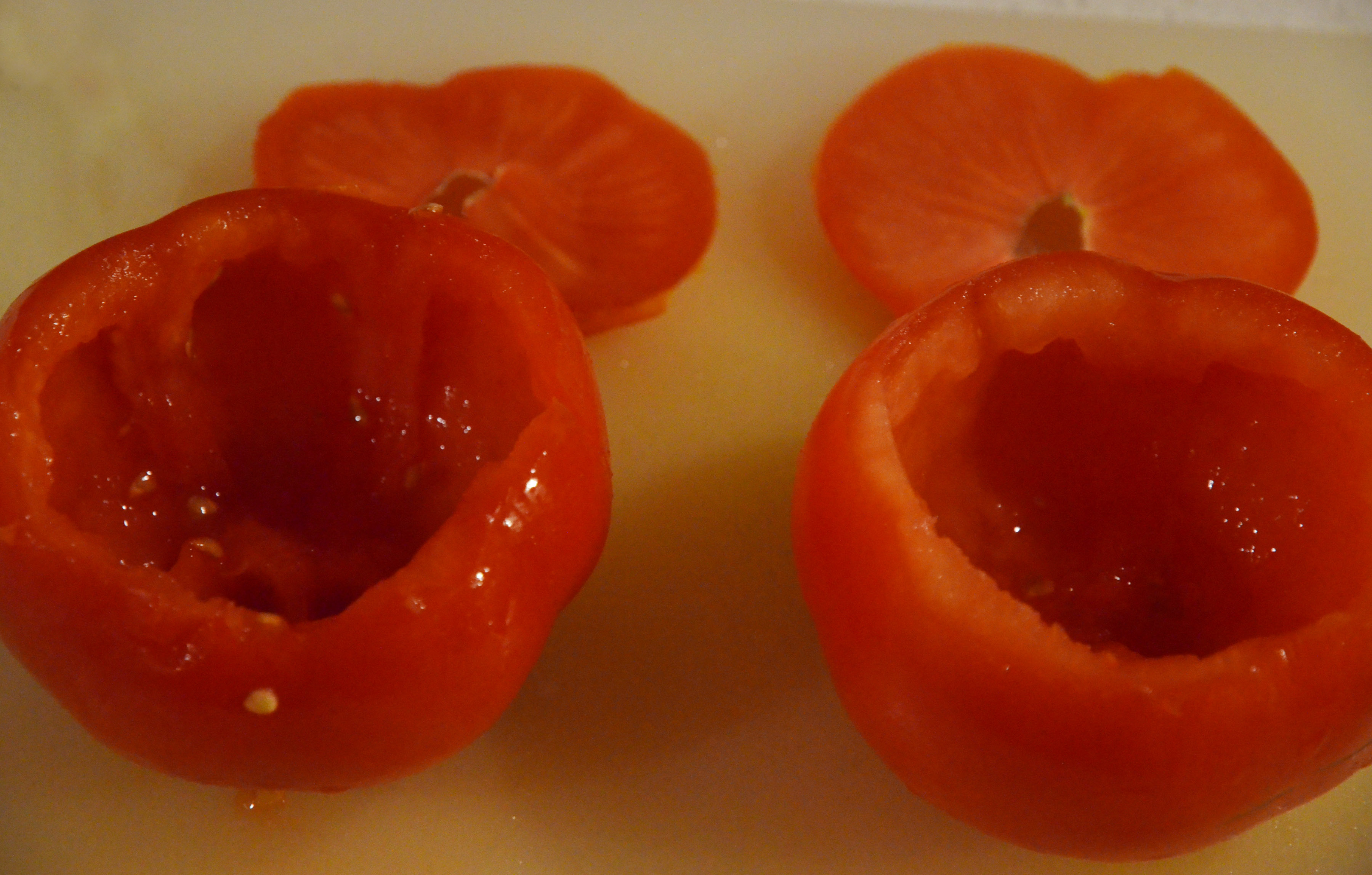 Stuff them tightly with the couscous, cover and bake in the oven at 180C for at least 15 minutes or until the tomato is starting to soften.