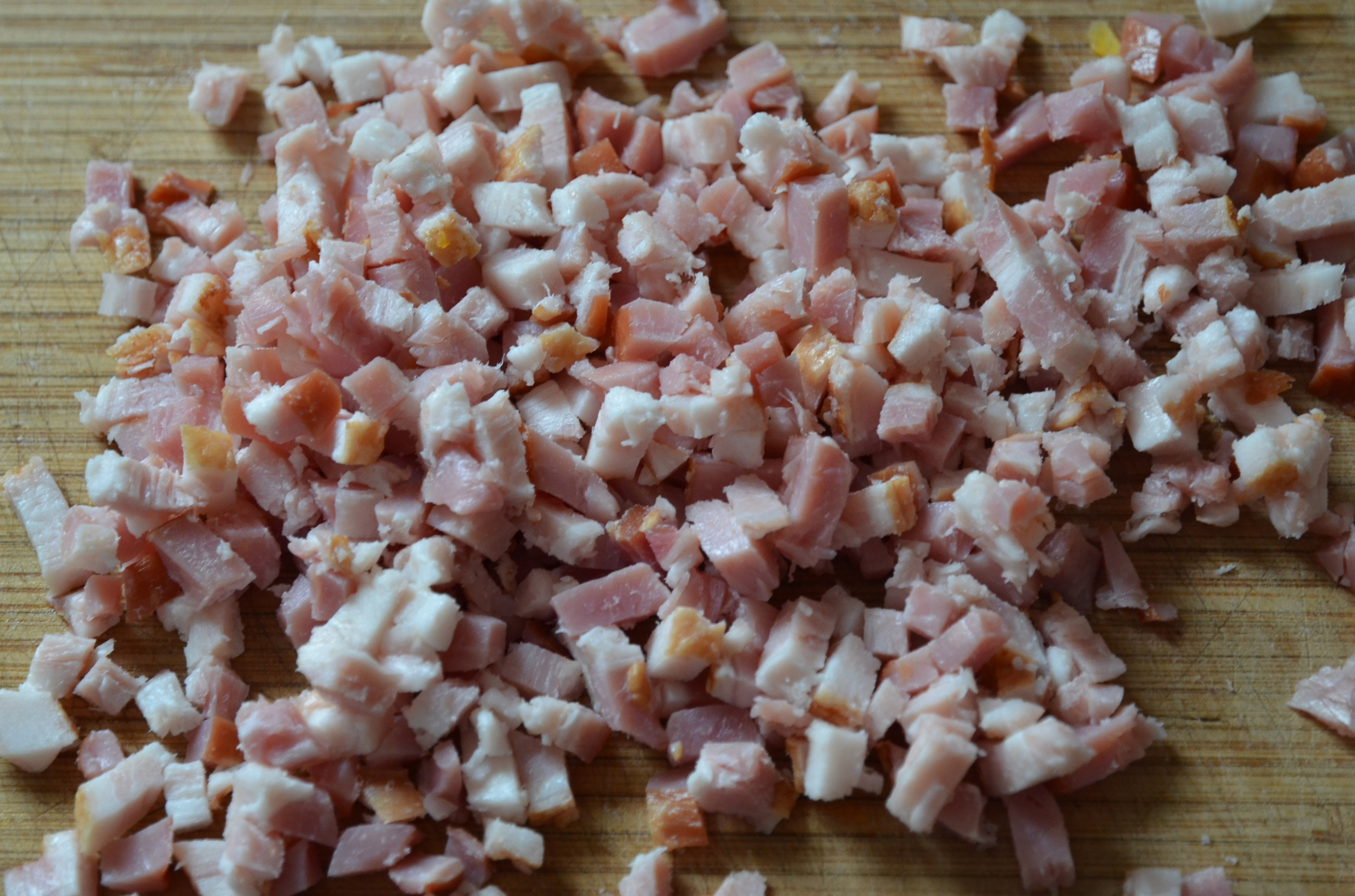 Now chop up the bacon and cook it…