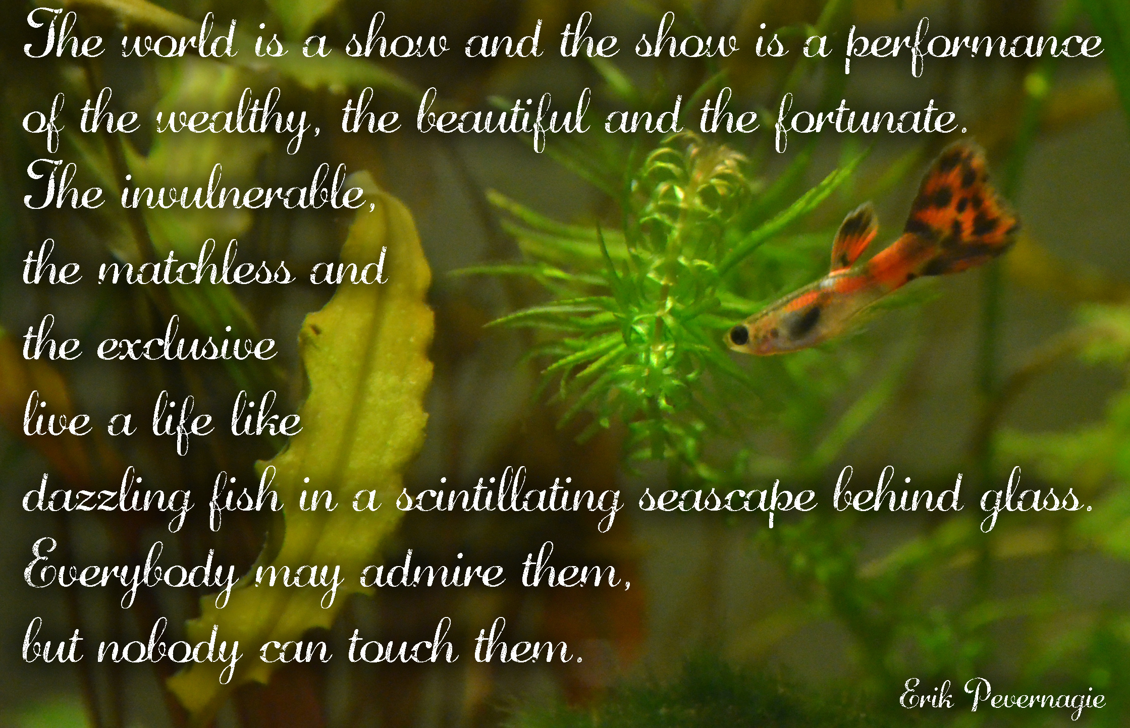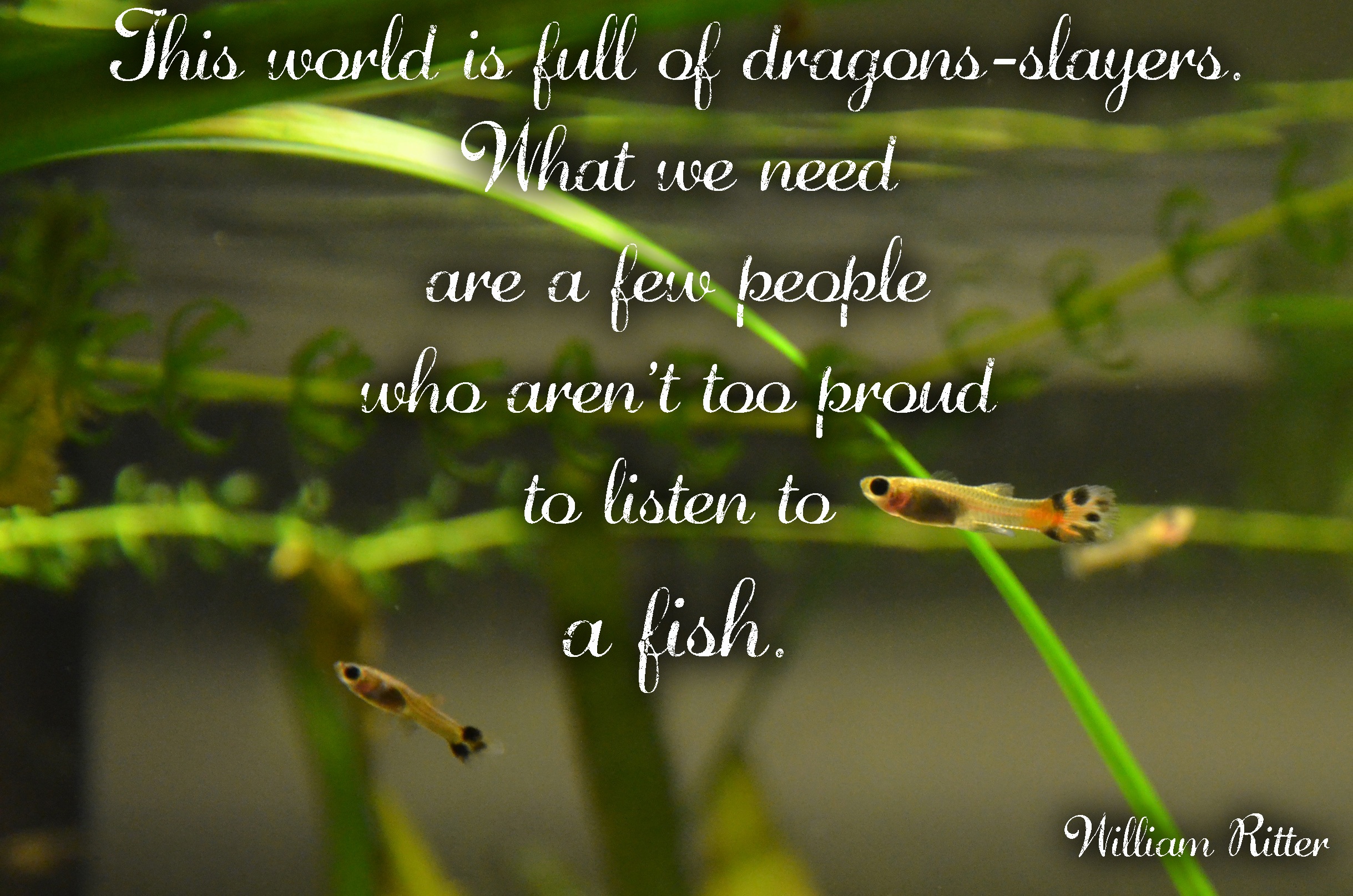 They’re so beautiful. And I can’t seem to take a decent photo of them. Born here, in our aquariums, I wanted to show them off. So I added some quotes in the hopes of making the blurry nature of moving fish in low light a little less obvious.