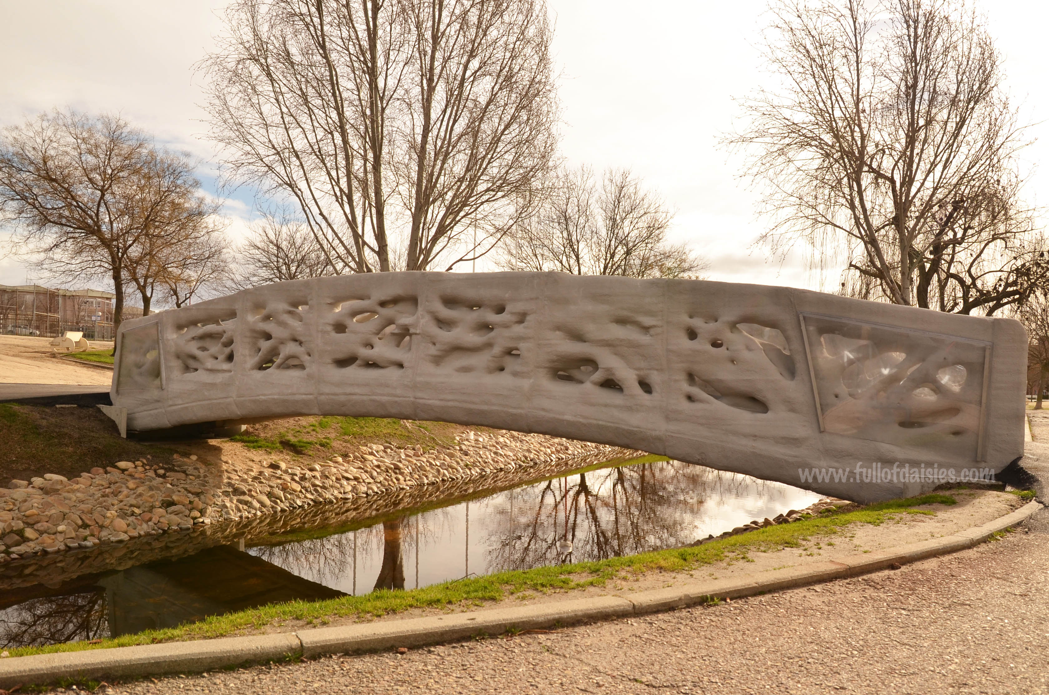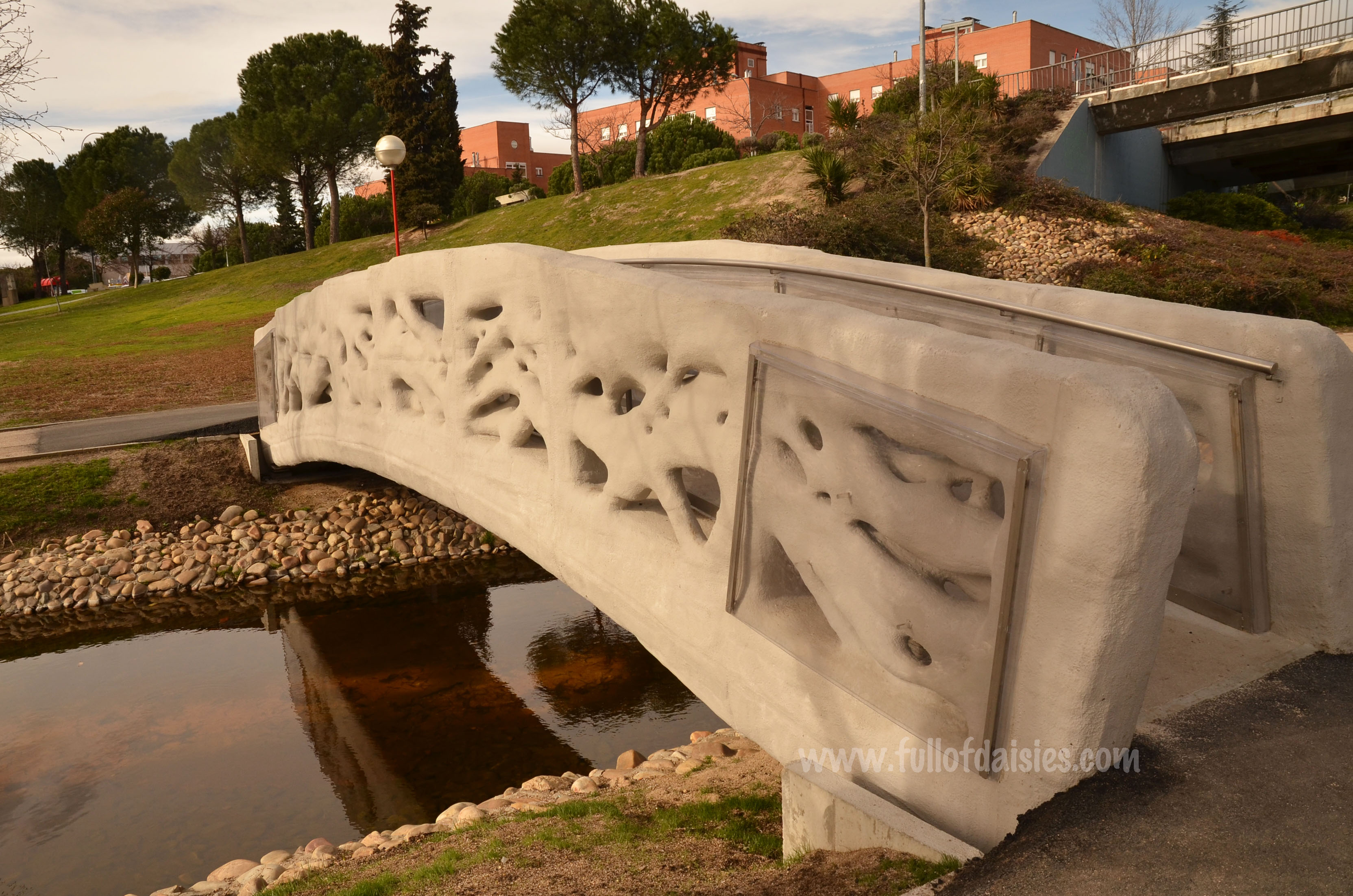 The structure is printed in micro-reinforced concrete and measures 12 meters in length and 1.75 meters wide. We even walked on it. Such fun!