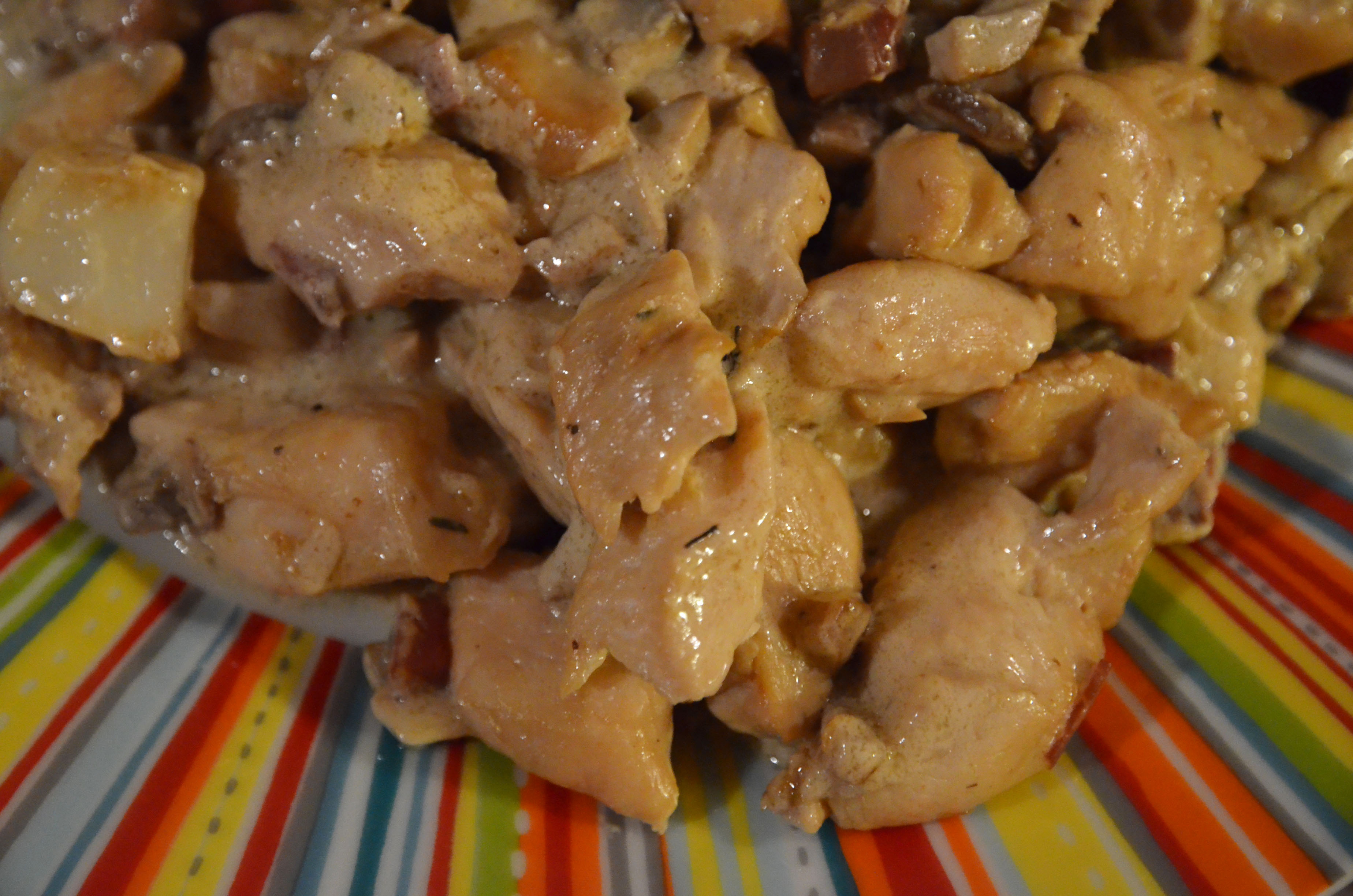 I didn’t coat the chunks of chicken in flour because I wanted to make a lighter sauce. I did, however, keep the chicken marinating with salt, pepper, olive oil and garlic cloves. Marinating meat always makes it better!