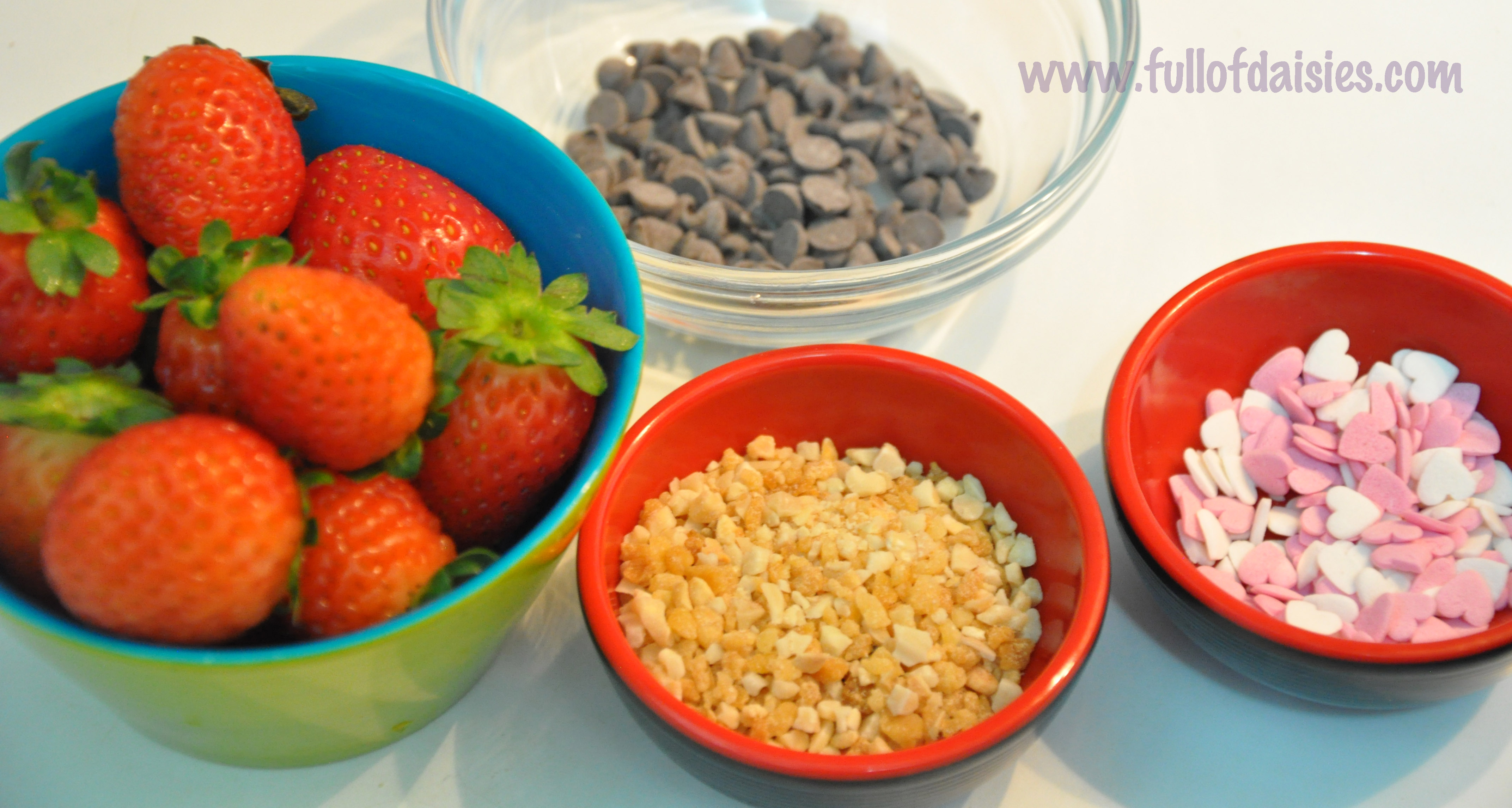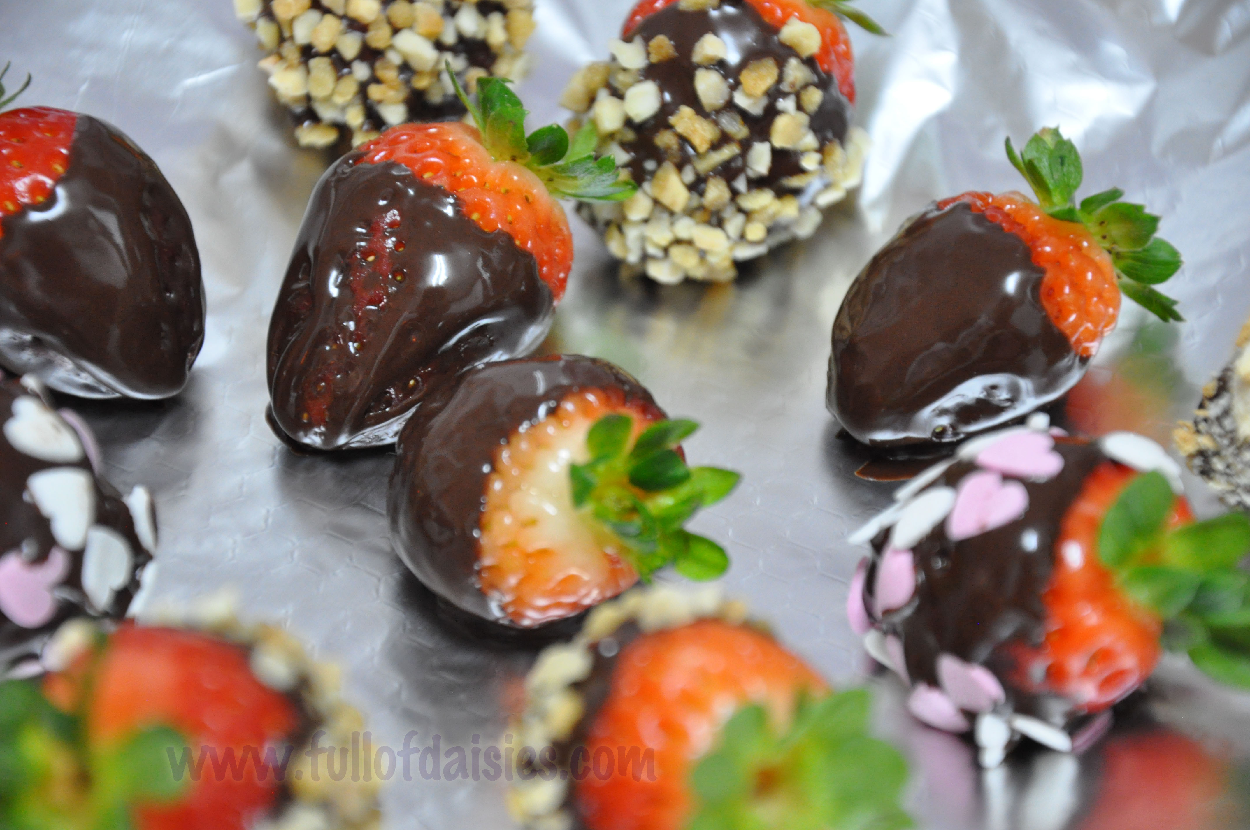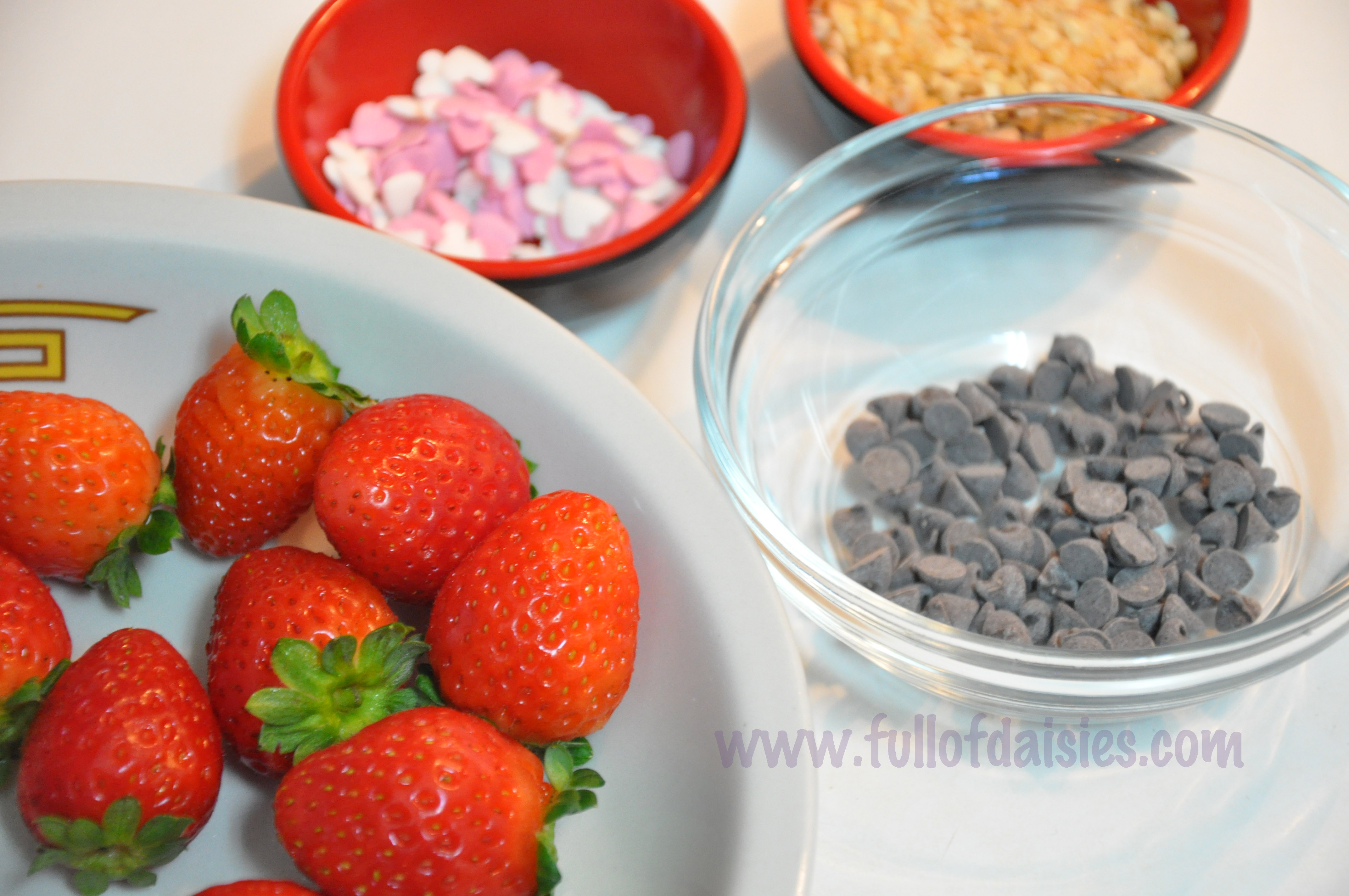 …to cover fresh strawberries with melted chocolate, roll them in toppings (heart shaped sprinkles, ground nuts or coconut) and take horrific photos to put on your blog 🙂