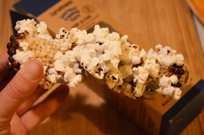 My sister gave me this incredible foodie present. The best thing for someone as addicted to popcorn as I am. All you do is put the cob in the microwavable bag (provided) and …. eat it! Also, the packaging was completely right: so so crunchy 🙂