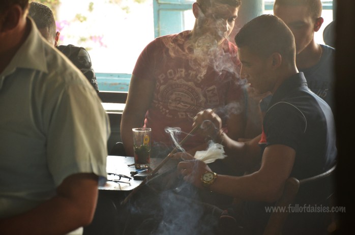 After ordering our usual shay bin nana (mint tea), we sat next to a group of men that were discussing energetically, phones and wads of money dumped on the table in front of them. We had a good view of the place from our corner, and could people watch (and steal some photos) without bothering anyone.
