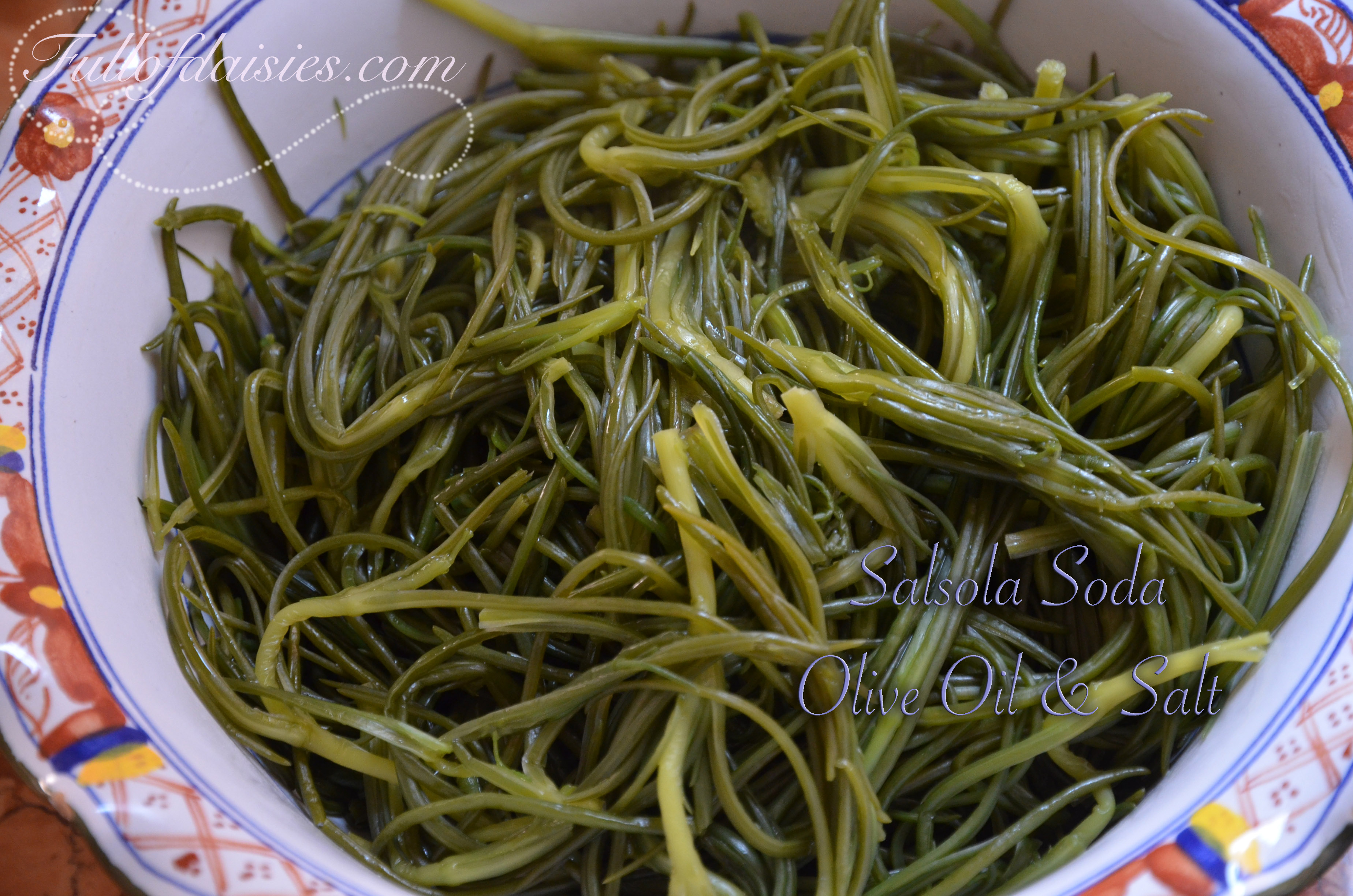 Instead, a side note to the following photo. In Italian, this vegetable is called agretti, barba del frate or even liscari. What I didn’t know was its English name, Salsola soda, and the fact that it was an fundamental element in the Italian art of glass making. From this spinachy-earthy-mineraly plant, soda ash was extracted and soda ash was used to lower the melting point of glass so as to be more efficiently moulded. What a story, huh?