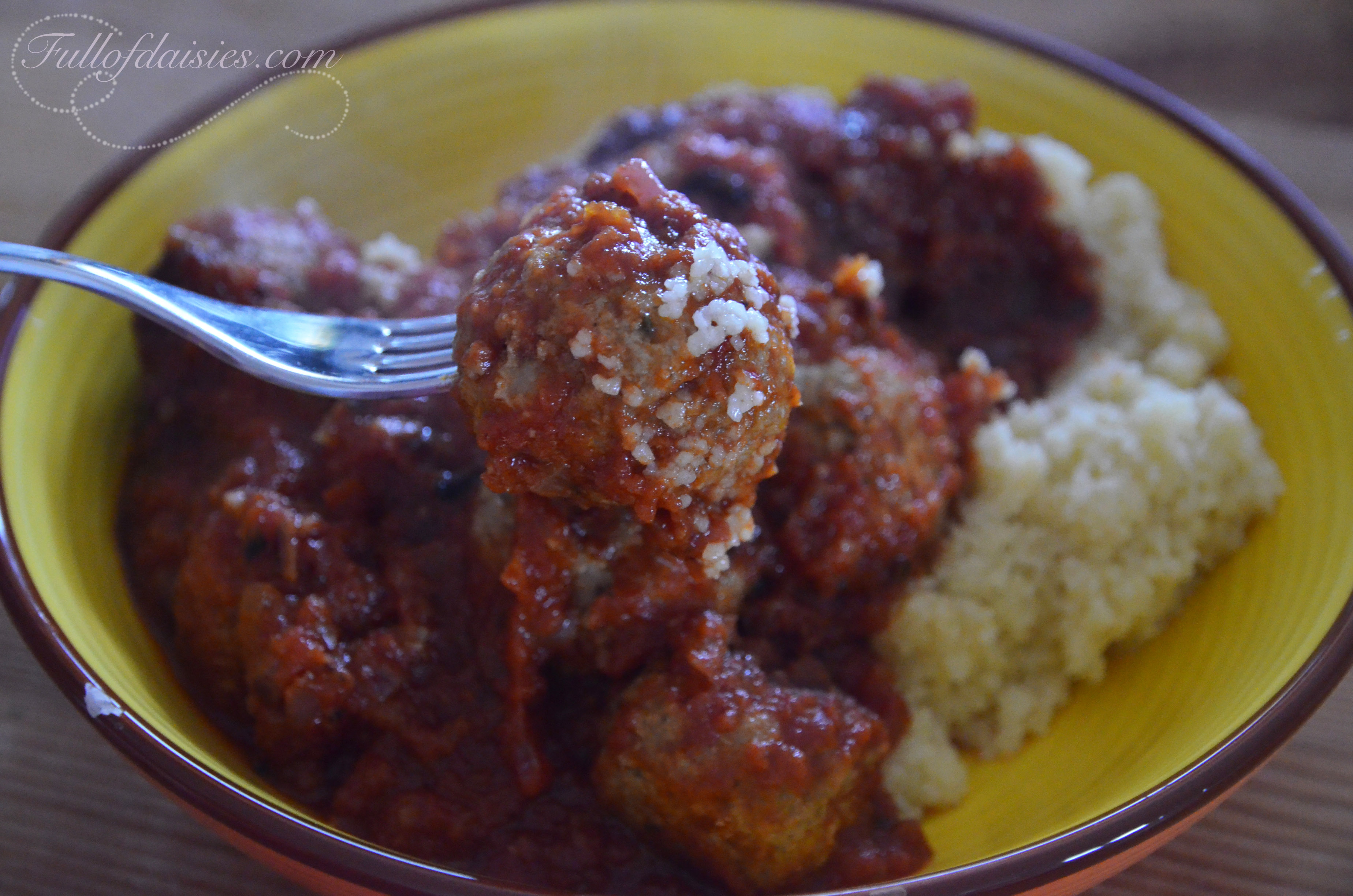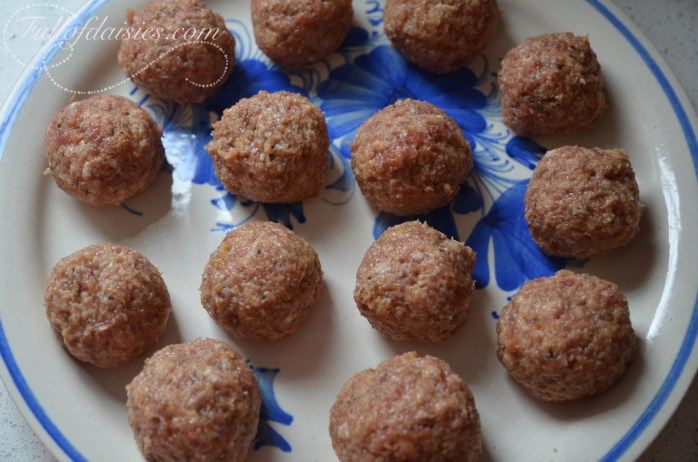 The only difference between mine and hers is the milk and breadcrumb mixture, that makes the meatballs slightly less dietetic but so so much more tender 🙂