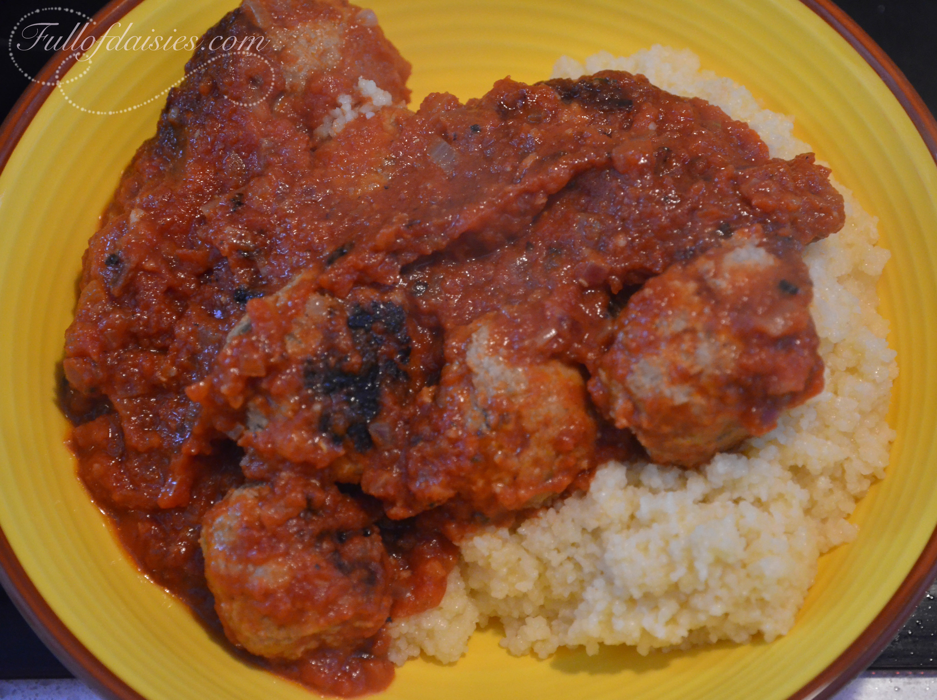 I like these meatballs with couscous, mash or rice, but a lighter side of peas or spinach could also be a good option.