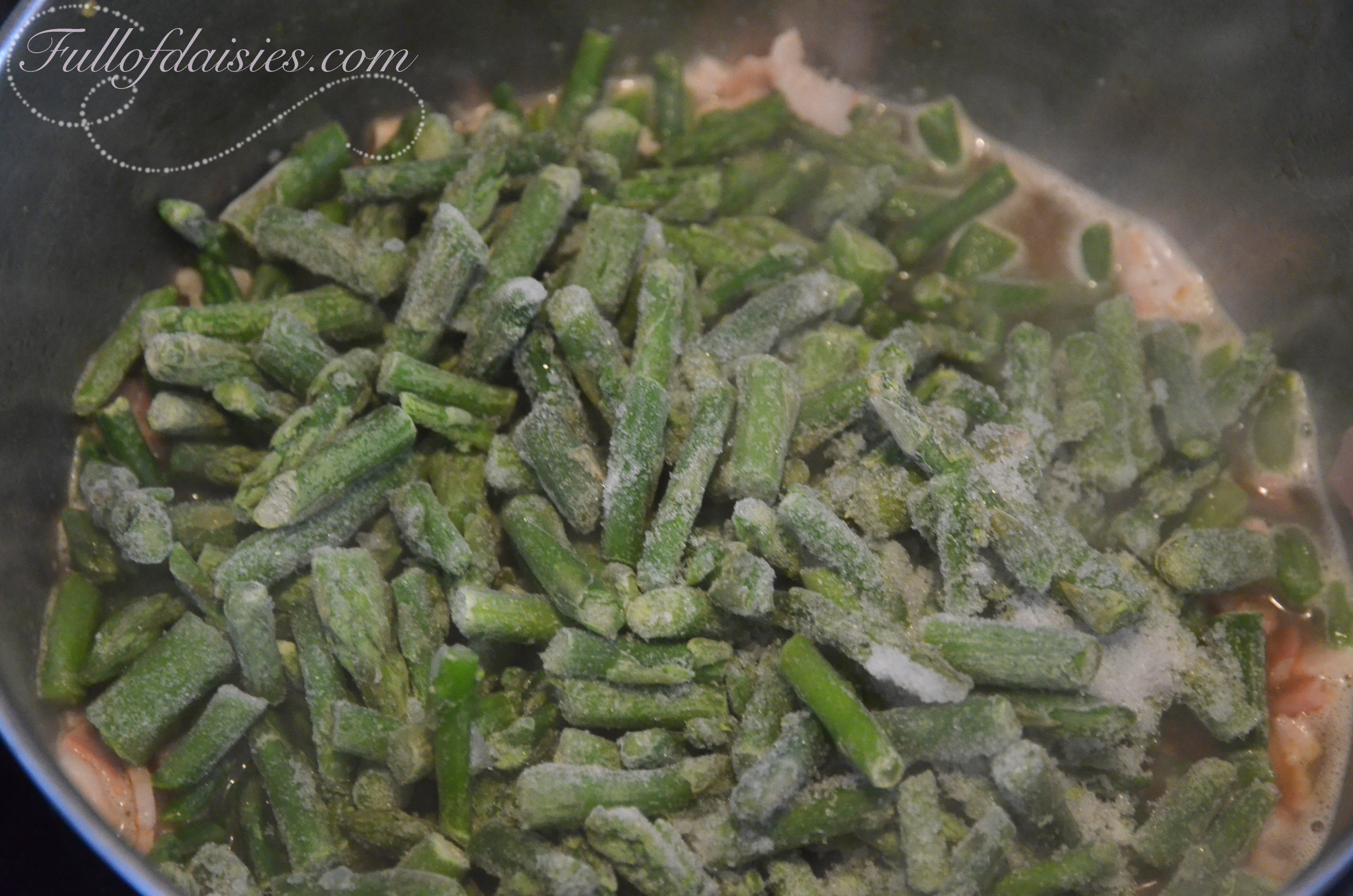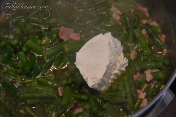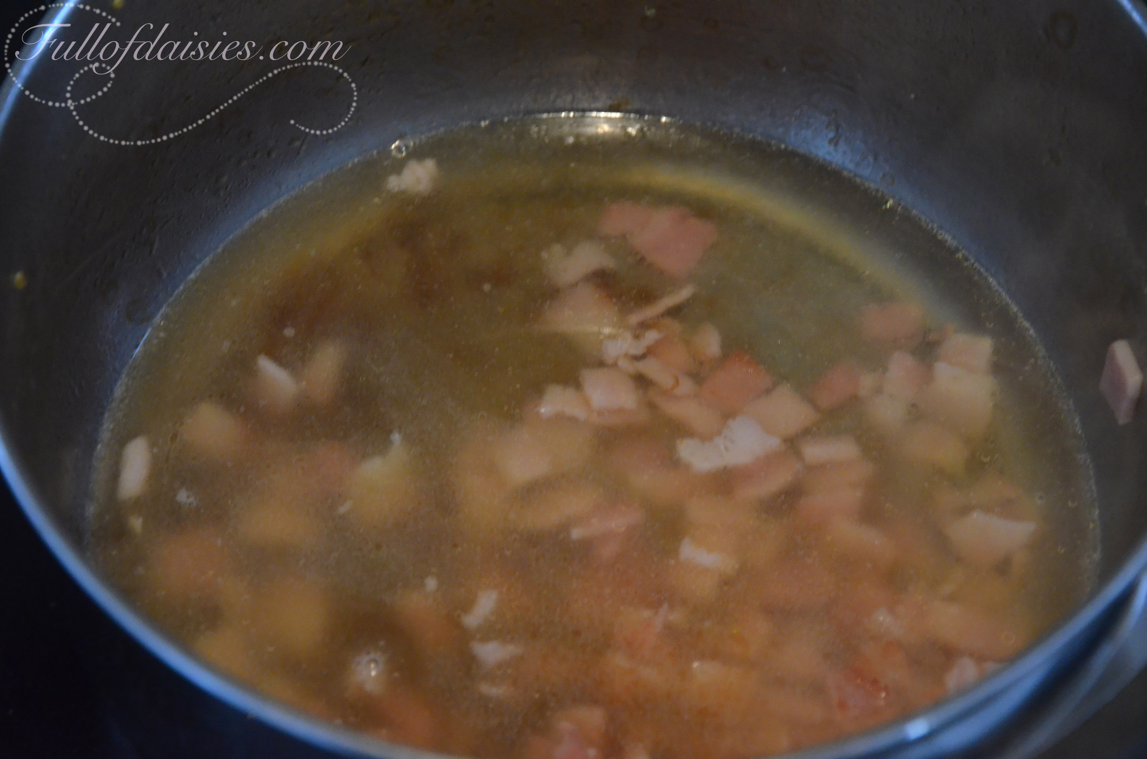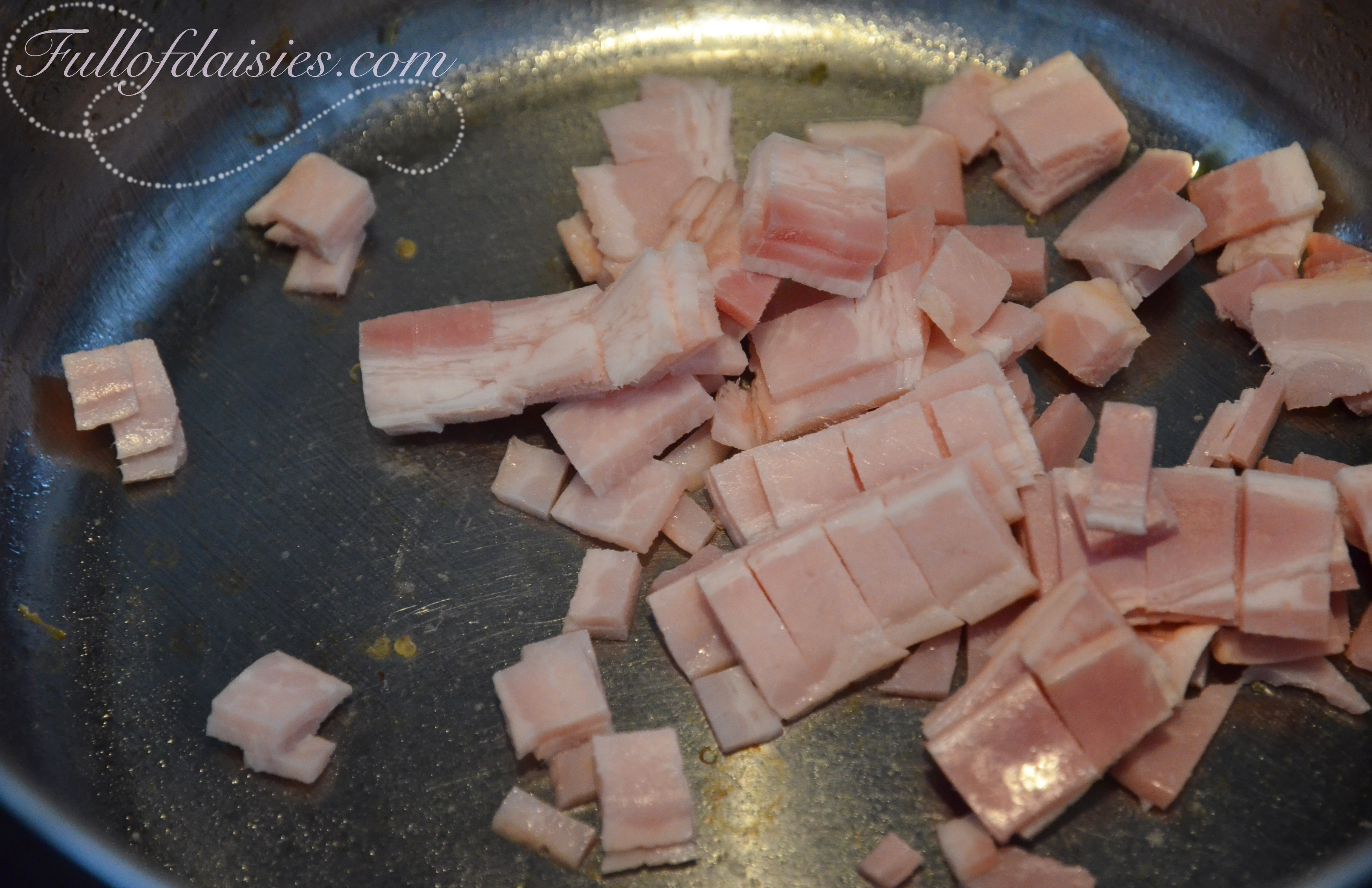 In a non-stick pot, put the bacon and, when it starts to sizzle, add a teaspoonful of butter