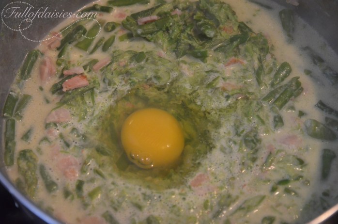 So last Sunday I opened the freezer and saw a whole bag of frozen asparagus, then opened the fridge and saw some bacon, puff pastry and eggs….