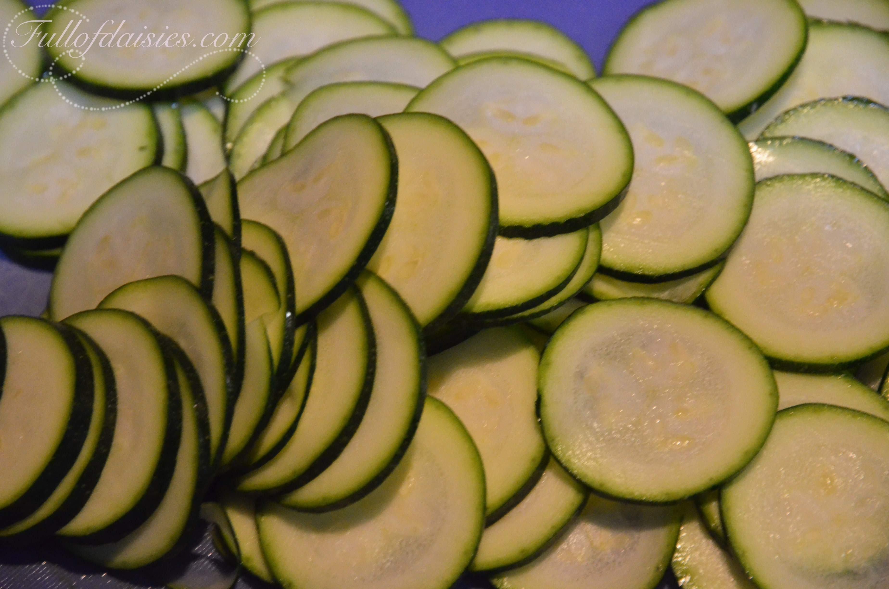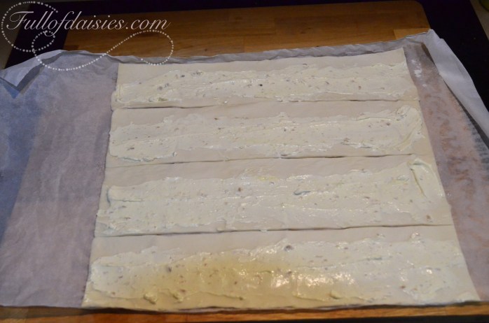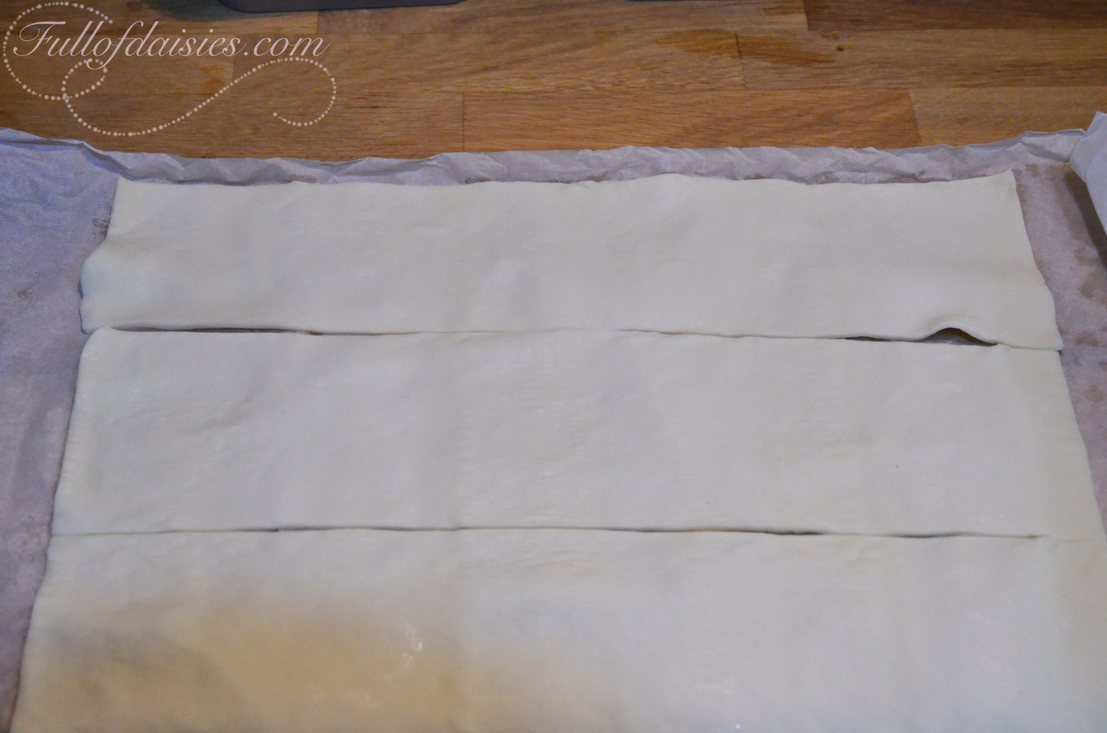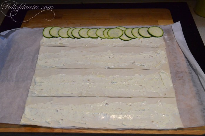 …place the zucchini, overlapping slightly and overflowing on the top of the strip of puff pastry…