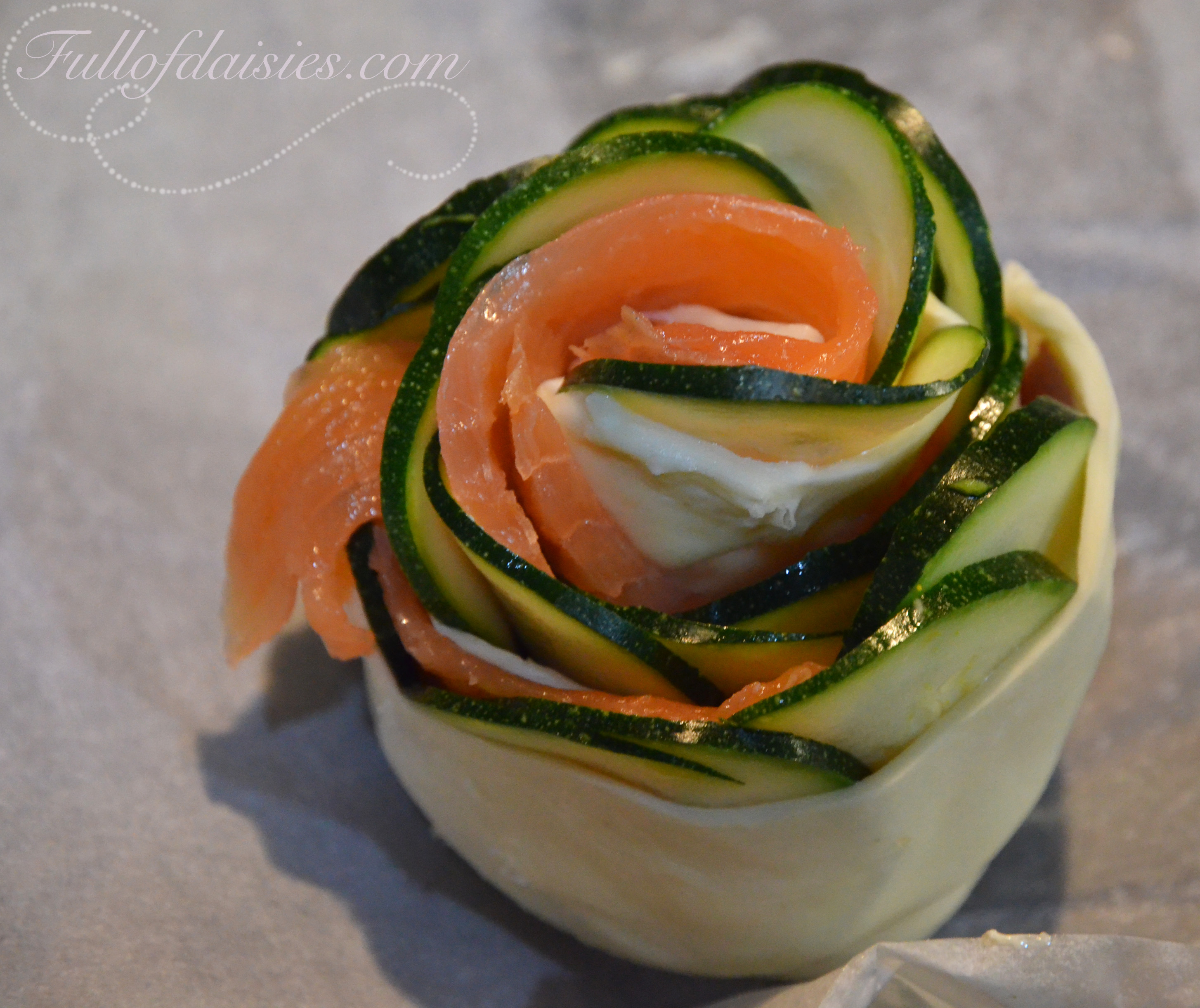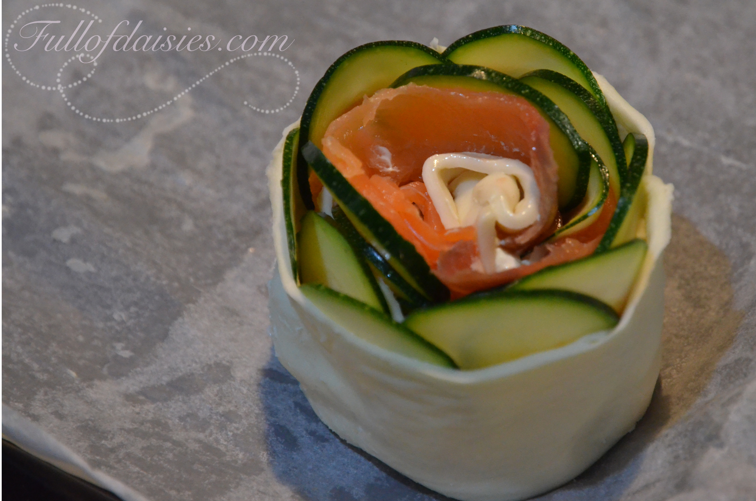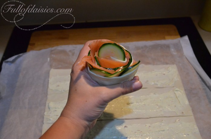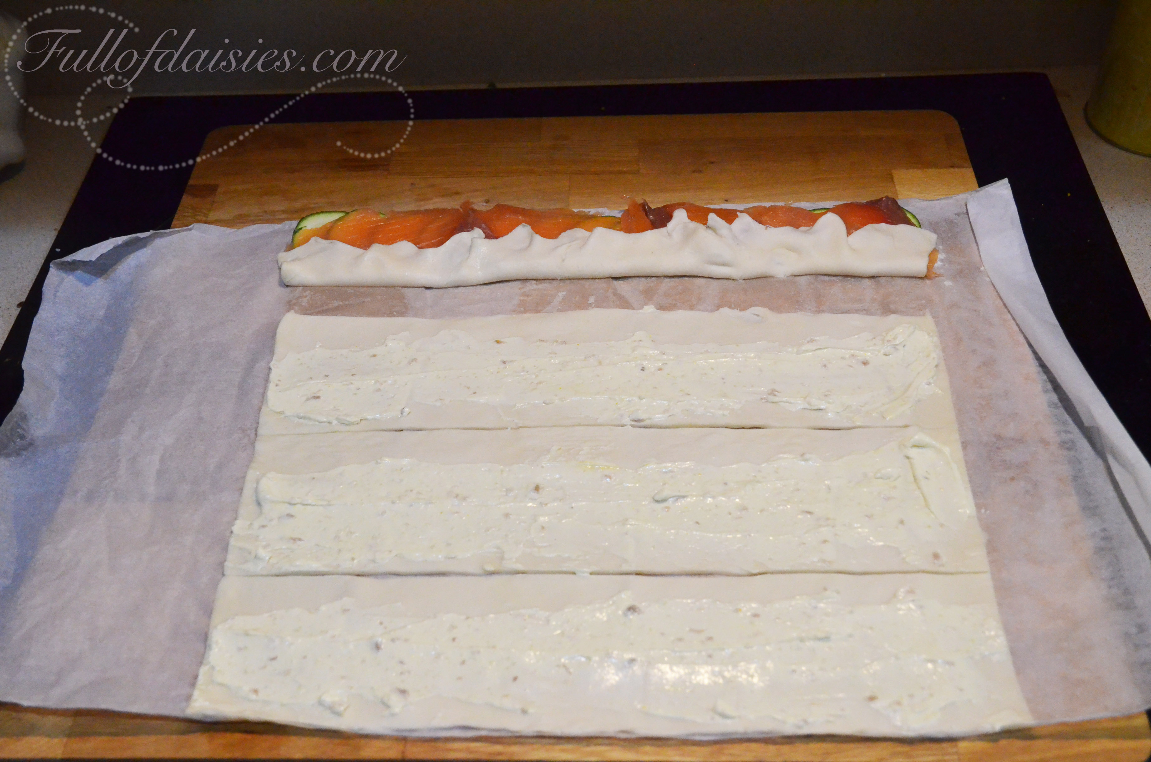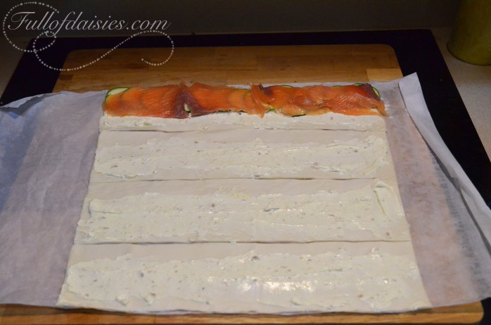 ..fold the bottom of the strip upwards, to fix the zucchini and salmon…