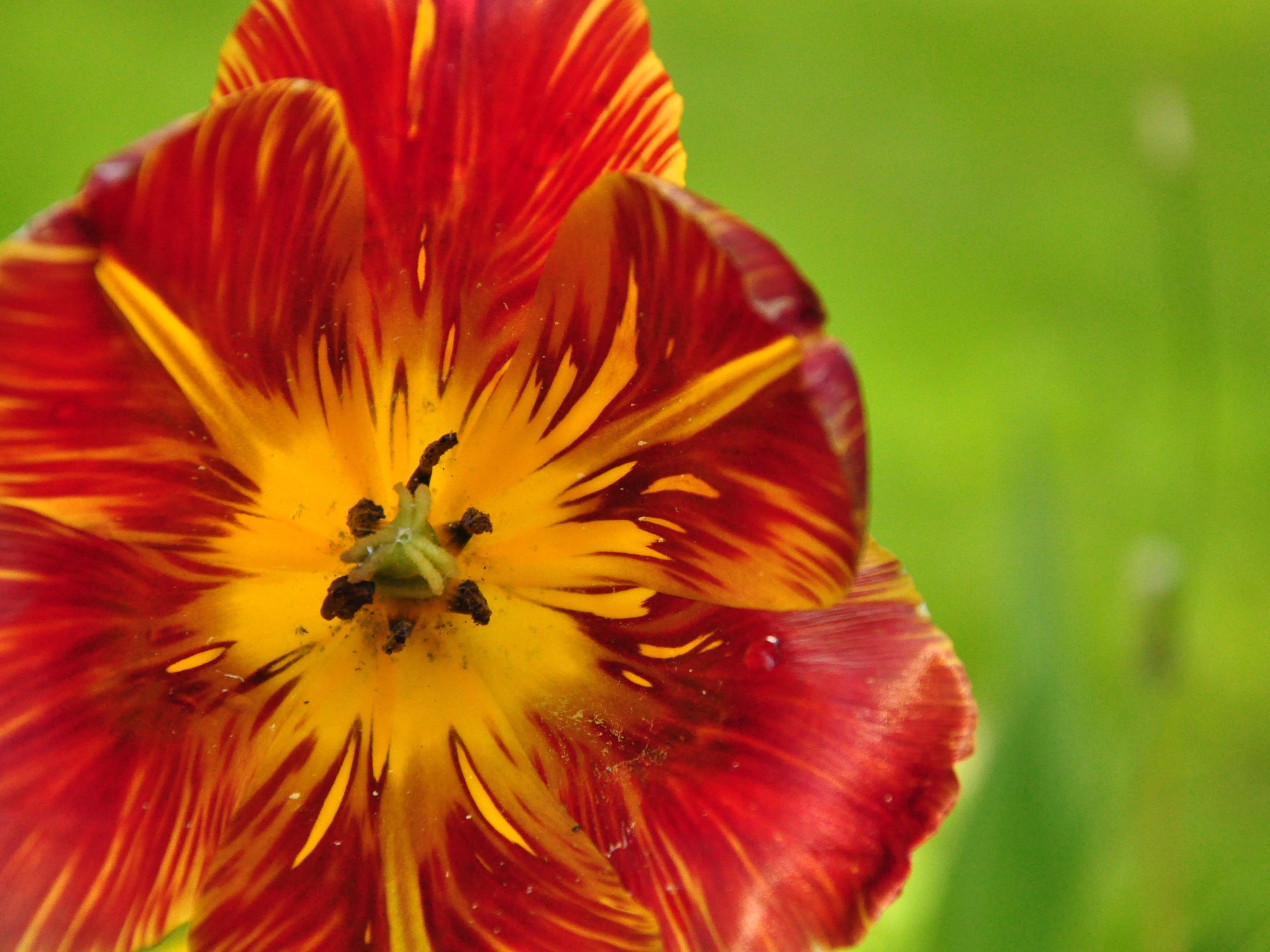 Then there was this one. A rich, block red tulip that shot out between all the others, already past its prime but still proud and defying, glaring its colour at everyone and daring them to comment on the lack of stripes 😉