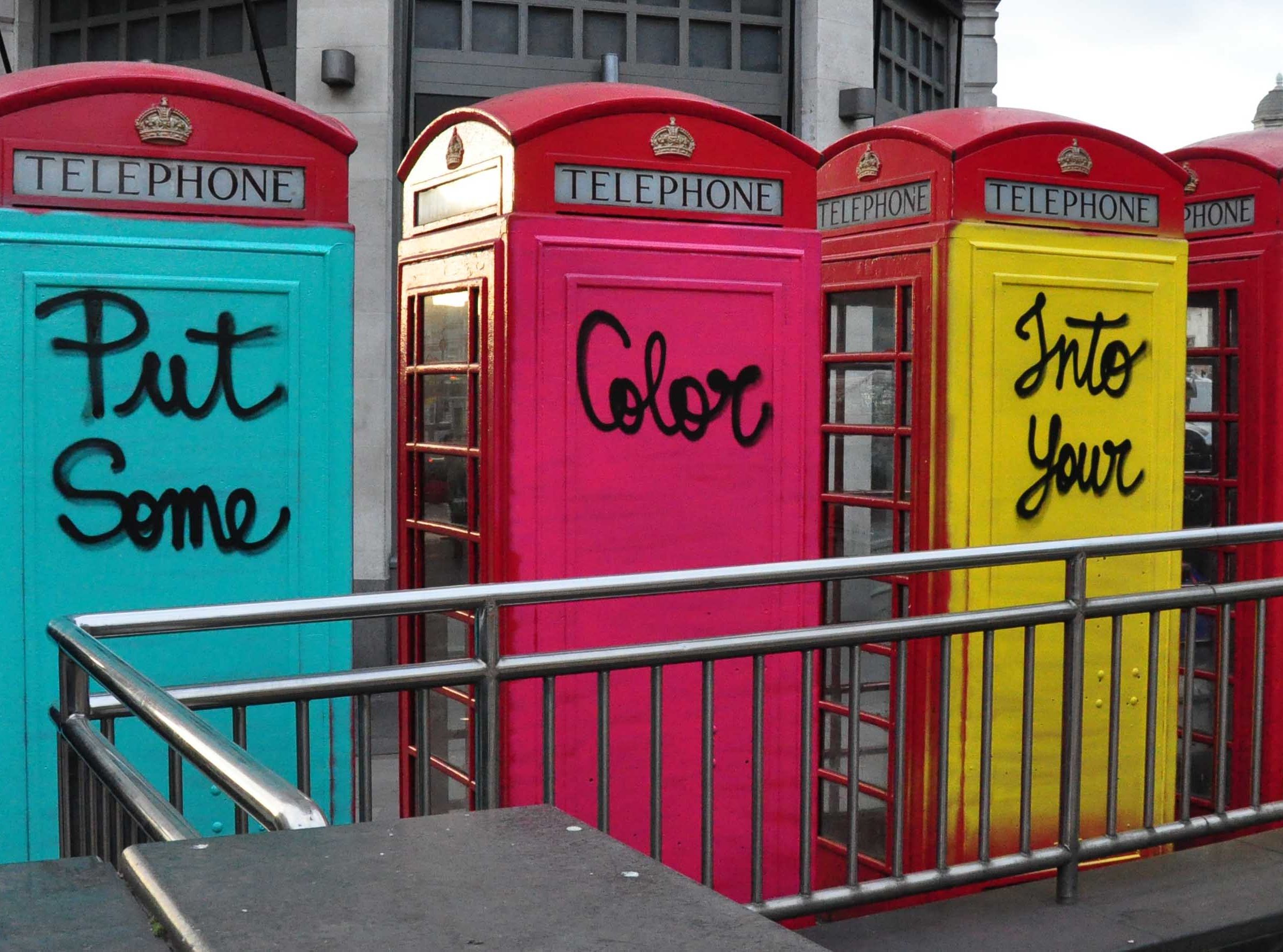 The other day, in London, we were walking around Trafalgar Square and there were these phone booths. I thought the colours were cute and the message inspiring. I took a photo. Then I heard a voice. A man’s voice. “Excuse me?” I was ready.… Continue Reading “Illegal painters”